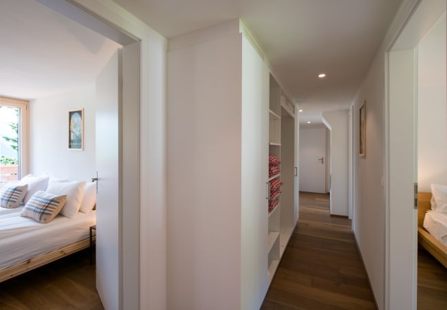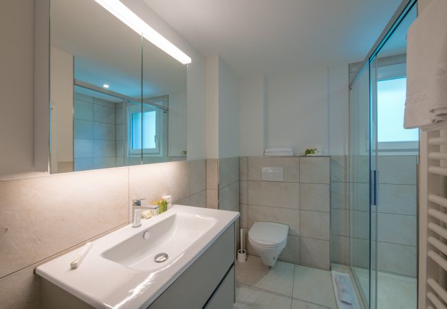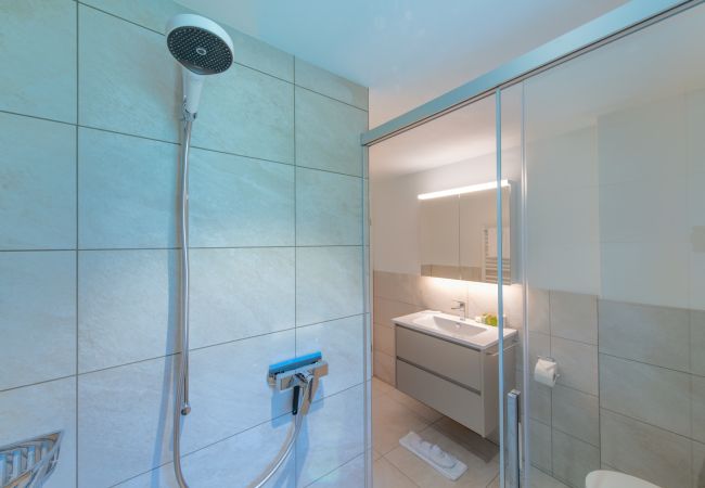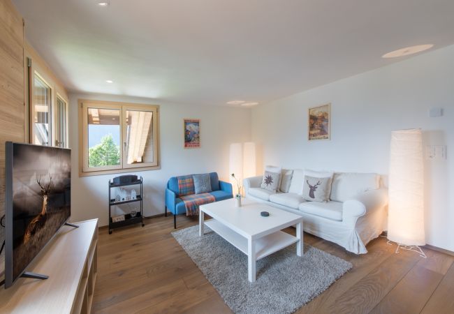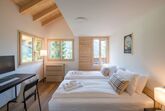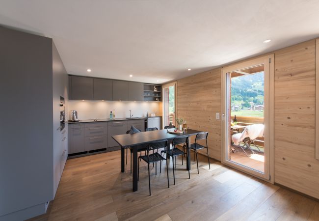 Der Eingangsbereich führt Sie in einen großzügigen offenen Wohnbereich mit Esstisch, vollausgestatteter moderner Küche und Sofas zum Entspannen nach einem langen Tag in den Bergen. Natürliches Licht durchflutet den Raum, und die atemberaubenden Bergblicke aus allen Richtungen werden Sie faszinieren und begeistern.