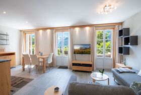 Chalet Mittaghorn Apartment 5 ist perfekt für Familien, die einen gemütlichen und modernen alpinen Rückzugsort suchen. Diese durchdacht eingerichtete 65 Quadratmeter große Ferienwohnung bietet komfortable Unterkunft für bis zu 5 Gäste und ist damit eine ideale Wahl für einen unvergesslichen Bergurlaub.