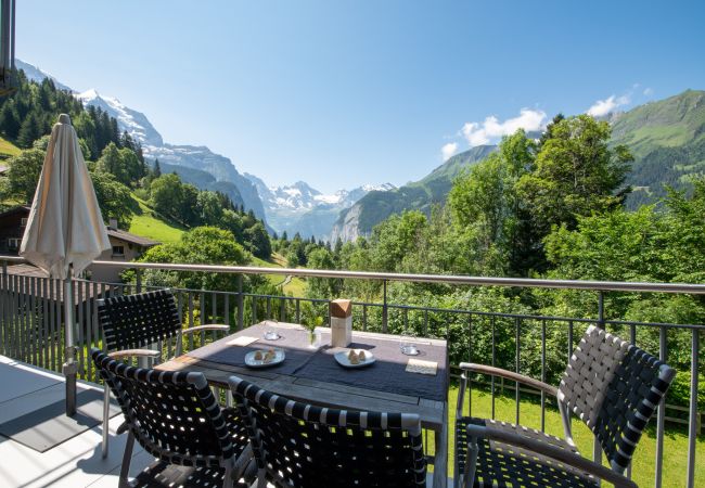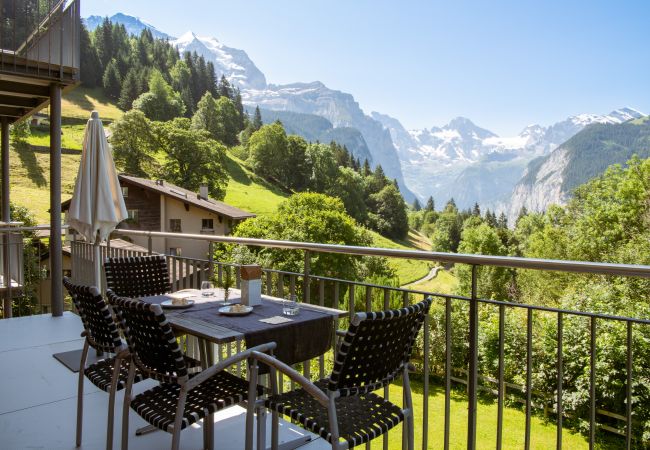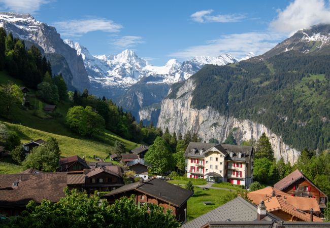 In ruhiger Berglage gelegen, bietet die Unterkunft eine 10 Quadratmeter große Terrasse mit atemberaubenden Bergblicken, perfekt für den Morgenkaffee oder zur Entspannung am Abend. Die Ferienwohnung liegt nur 460 Meter vom Coop-Supermarkt und 480 Meter vom Bahnhof Wengen entfernt und bietet damit einfachen Zugang zu lokalen Annehmlichkeiten und Verkehrsmitteln.