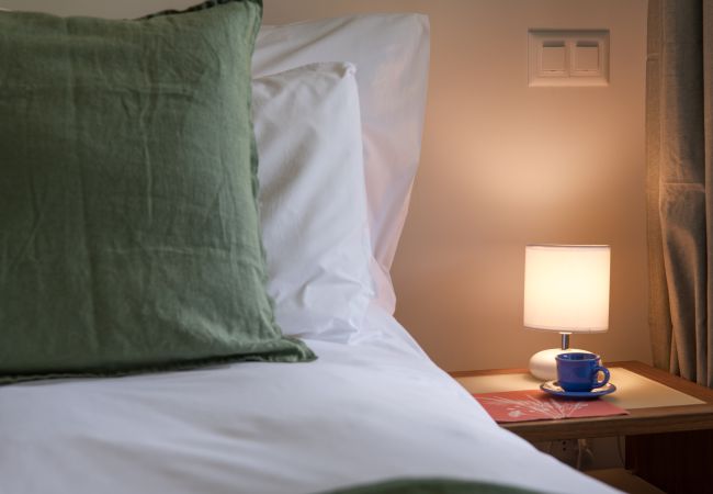 Die Ferienwohnung verfügt über zwei gut ausgestattete Schlafzimmer mit flexiblen Schlafmöglichkeiten, darunter ein Doppelbett (160x200 cm), ein Einzelbett (90x200 cm) und ein Stockbett (2x 90x200 cm). Zwei Duschen ausgestattete Badezimmer sorgen für Bequemlichkeit und Komfort für alle Gäste. Die moderne Küche ist vollständig ausgestattet mit allen Essentials, einschließlich Glaskeramikkochfeld, Kühlschrank, Backofen, Mikrowelle, Geschirrspüler, Kaffeemaschine und einem kompletten Küchengeschirr-Set.