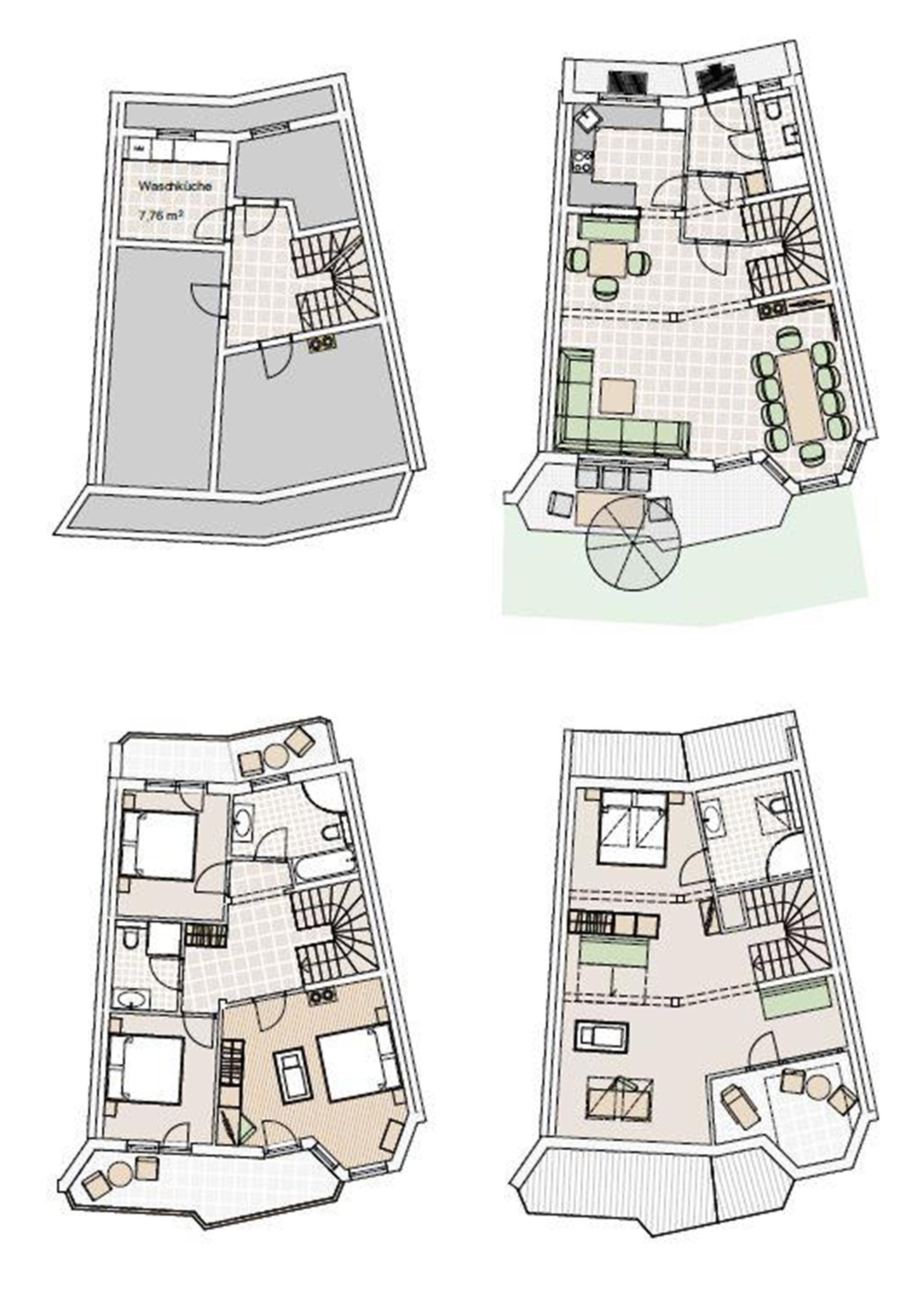 Im Erdgeschoss erwartet Sie ein hochwertig eingerichteter Wohnraum mit absolutem Wohlfühlambiente: Vom großen Tisch über die gemütliche Couchgarnitur bis hin zu Großbild-TV, Stereoanlage und W-Lan fehlt es Ihnen hier an nichts. Selbstversorger profitieren von der voll ausgestatteten Küche. Dusche/WC machen das Erdgeschoss komplett. Im Sommer ist die südseitige Terrasse des Ferienhauses ein Geheimtipp für erholsame Stunden. Die 3 Doppelzimmer im 1. Obergeschoss verfügen jeweils über einen Balkon sowie eines über ein zusätzliches TV-Gerät. Für optimale Wohnqualität sorgen zudem 2 separate Bäder. Ob schnelle Dusche am Morgen oder Verwöhn-Bad am Abend: Im Haus Elisengrund können Sie beides haben. Das 2. Obergeschoss überrascht mit einem weiteren Wohnhighlight: Ein Atelier mit hohen Dachbalken, schöner Loggia mit Doppelbett, Doppelcouch sowie Bad mit Dusche/WC und eigenem TV macht das Urlaubs-Wohnglück perfekt.