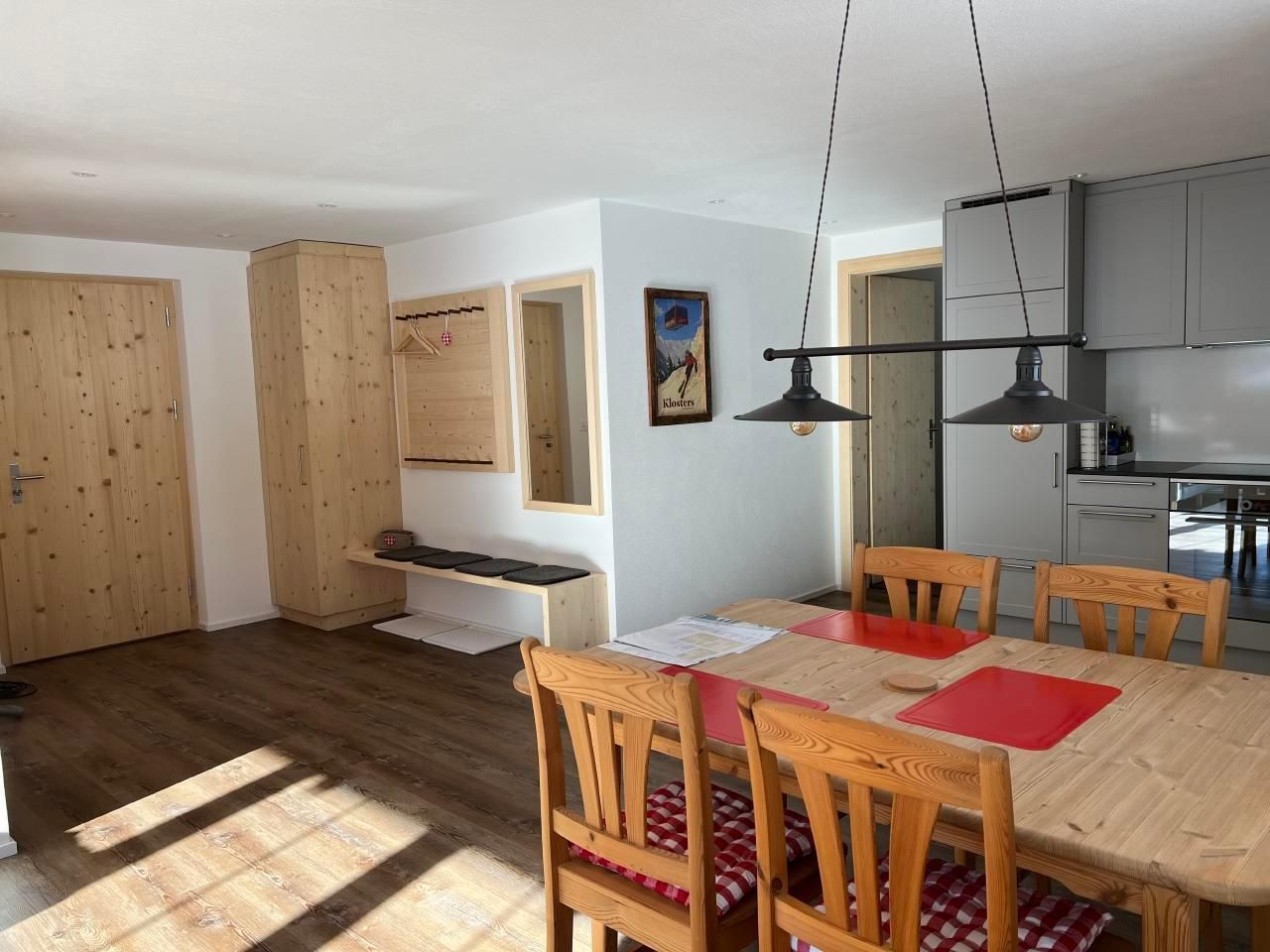 Die 2022 erbaute Nichtraucher-Wohnung mit herrlicher Aussicht auf die Berge befindet sich im malerischen Walserdorf Klosters-Monbiel. Gemütliches Wohnzimmer, geräumige Küche, grosse Dusche, Schlafzimmer, eigener Sitzplatz, Ski- und Bikeraum. Für Allergiker und Elektrosensible geeignet dank memon-Ausstattung. Vor der Tür befinden sich die Langlaufloipe und schöne Sommer- und Winter-Wanderwege. 50m zum Bus, der dich in 10 Minuten ins Zentrum von Klosters, zum Bahnhof und zur Gotschnabahn bringt. Ferienwohnung 62 m2 + Vorraum 10 m2 - Grosser Wohnraum mit Küche, Esstisch und Wohnzimmer - Schlafzimmer mit Doppelbett 180x200 und 4-türigem Kleiderschrank - Auf Anfrage bis 3 Kinder auf Matratzen im Wohnzimmer möglich - Auf Anfrage 1 Erwachsener auf Zusatzbett im Wohnzimmer möglich - Grosszügige Dusche/WC - Garderobe mit Sitzbank - Raum für die Aufbewahrung von Ski, Skischuhe und Bike - Eigener Sitzplatz mit Tisch und 4 Stühlen (Sommer) - 1 Parkplatz im Freien inbegriffen