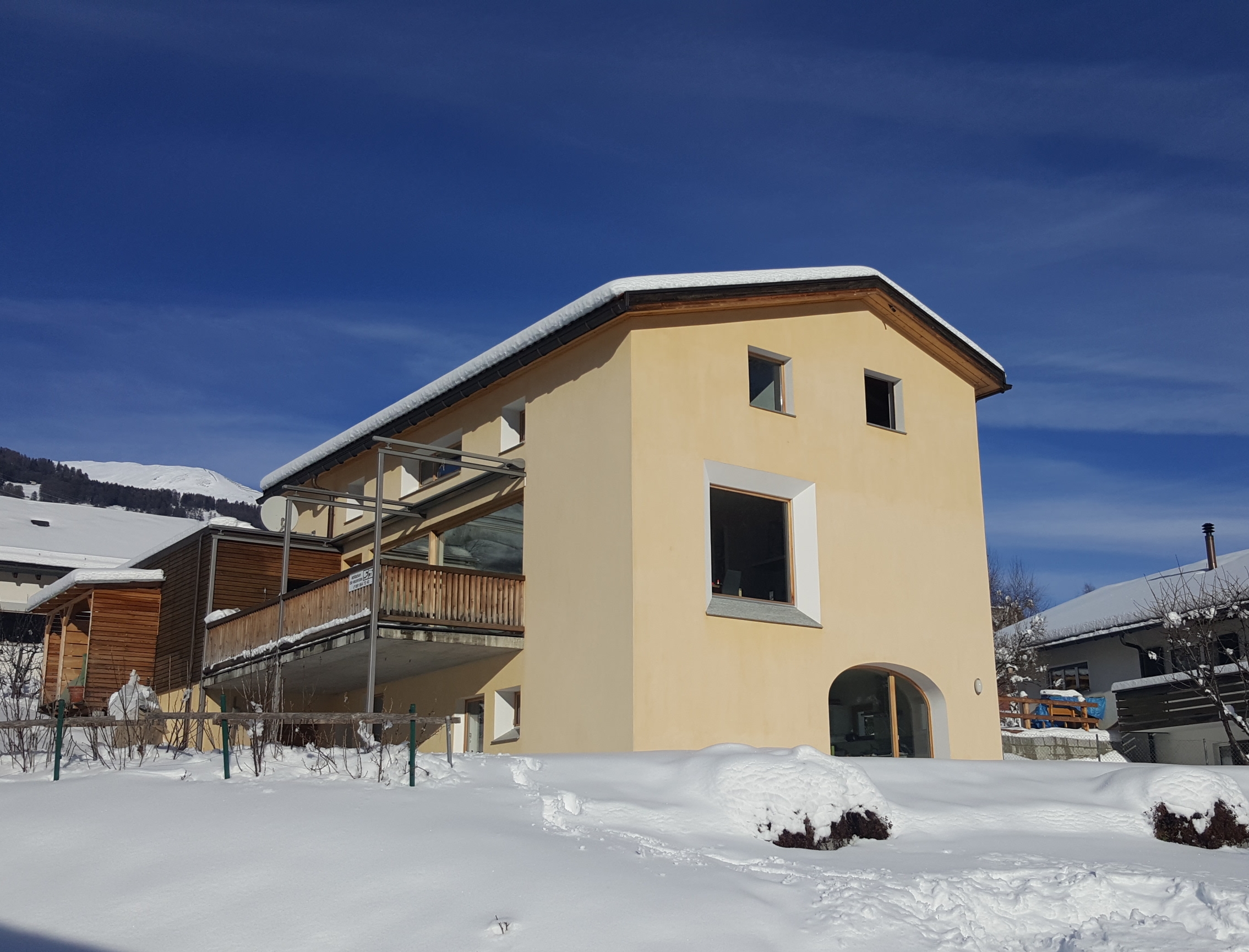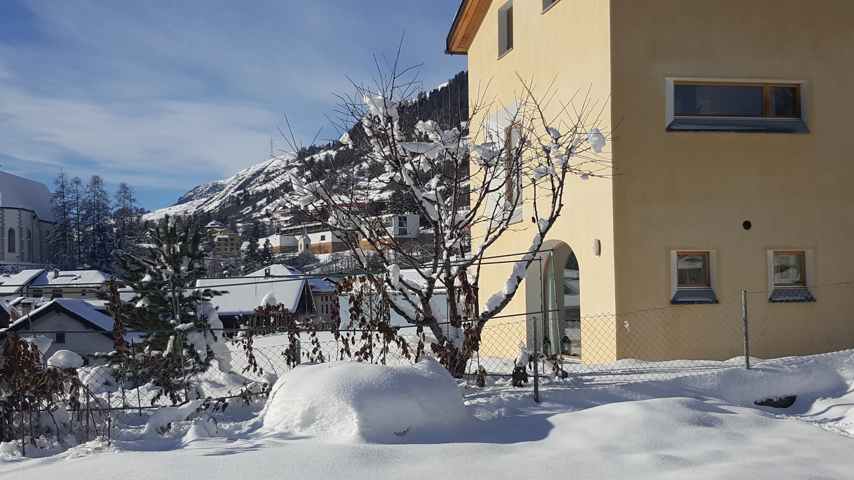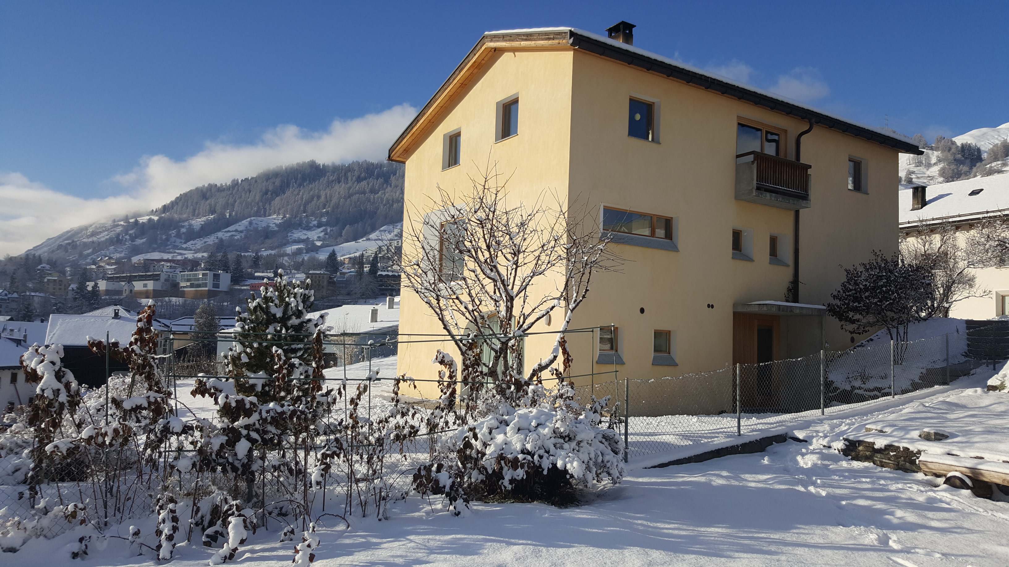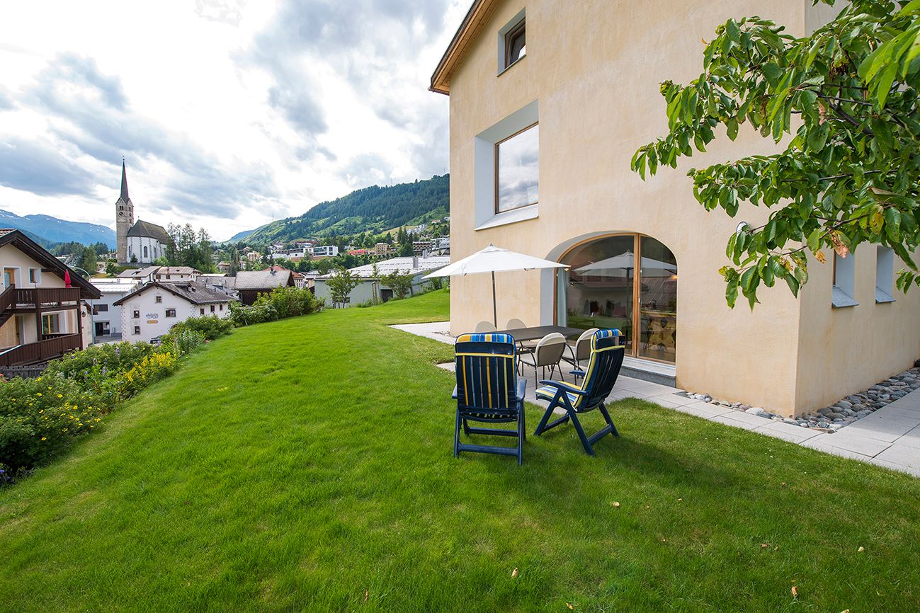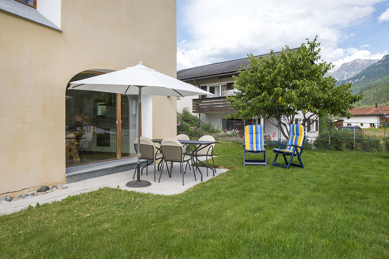 Im 2006 erbautes Einfamilienhaus an ruhiger, idyllischer und dennoch zentraler Lage mit schöner Aussicht. In der Nähe des alten Dorfkerns (Scuol sot), nur wenige Gehminuten vom Erlebnisbad Bogn Engiadina entfernt. Wohnung mit separatem Eingang und Gartensitzplatz mit herrlichem Ausblick. Gemütliche 2 1/2 Zimmerwohnung mit Parkettboden, Bodenheizung, offener Küche, Wohn- Esszimmer mit Sofabett, SAT-TV, Radio, WLAN-Anschluss, 1 Doppelschlafzimmer, Badezimmer mit Dusche/WC.