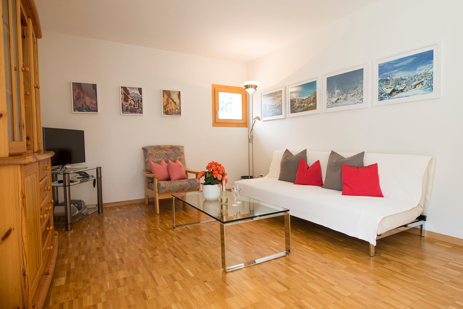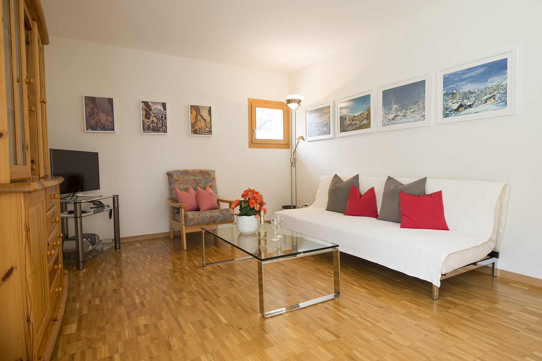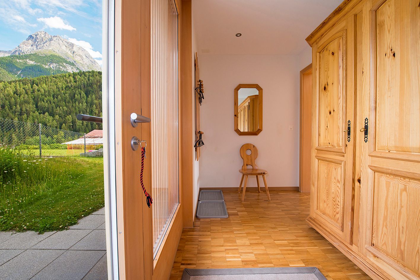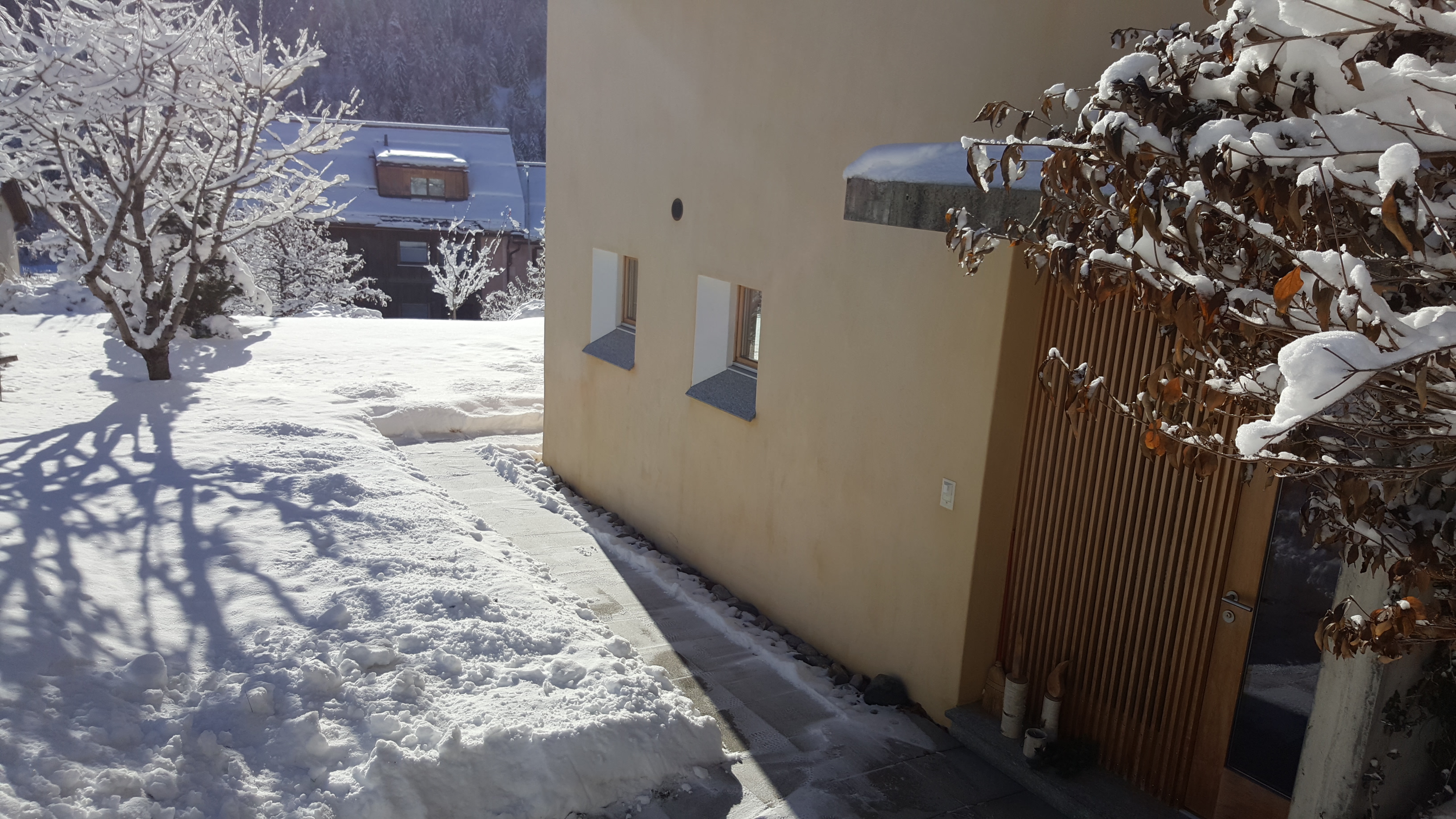 Im 2006 erbautes Einfamilienhaus an ruhiger, idyllischer und dennoch zentraler Lage mit schöner Aussicht. In der Nähe des alten Dorfkerns (Scuol sot), nur wenige Gehminuten vom Erlebnisbad Bogn Engiadina entfernt. Wohnung mit separatem Eingang und Gartensitzplatz mit herrlichem Ausblick. Gemütliche 2 1/2 Zimmerwohnung mit Parkettboden, Bodenheizung, offener Küche, Wohn- Esszimmer mit Sofabett, SAT-TV, Radio, WLAN-Anschluss, 1 Doppelschlafzimmer, Badezimmer mit Dusche/WC.