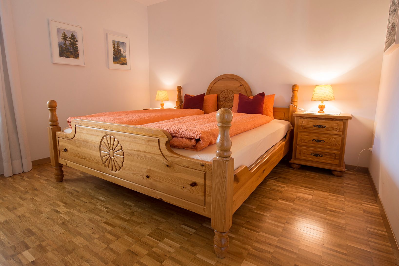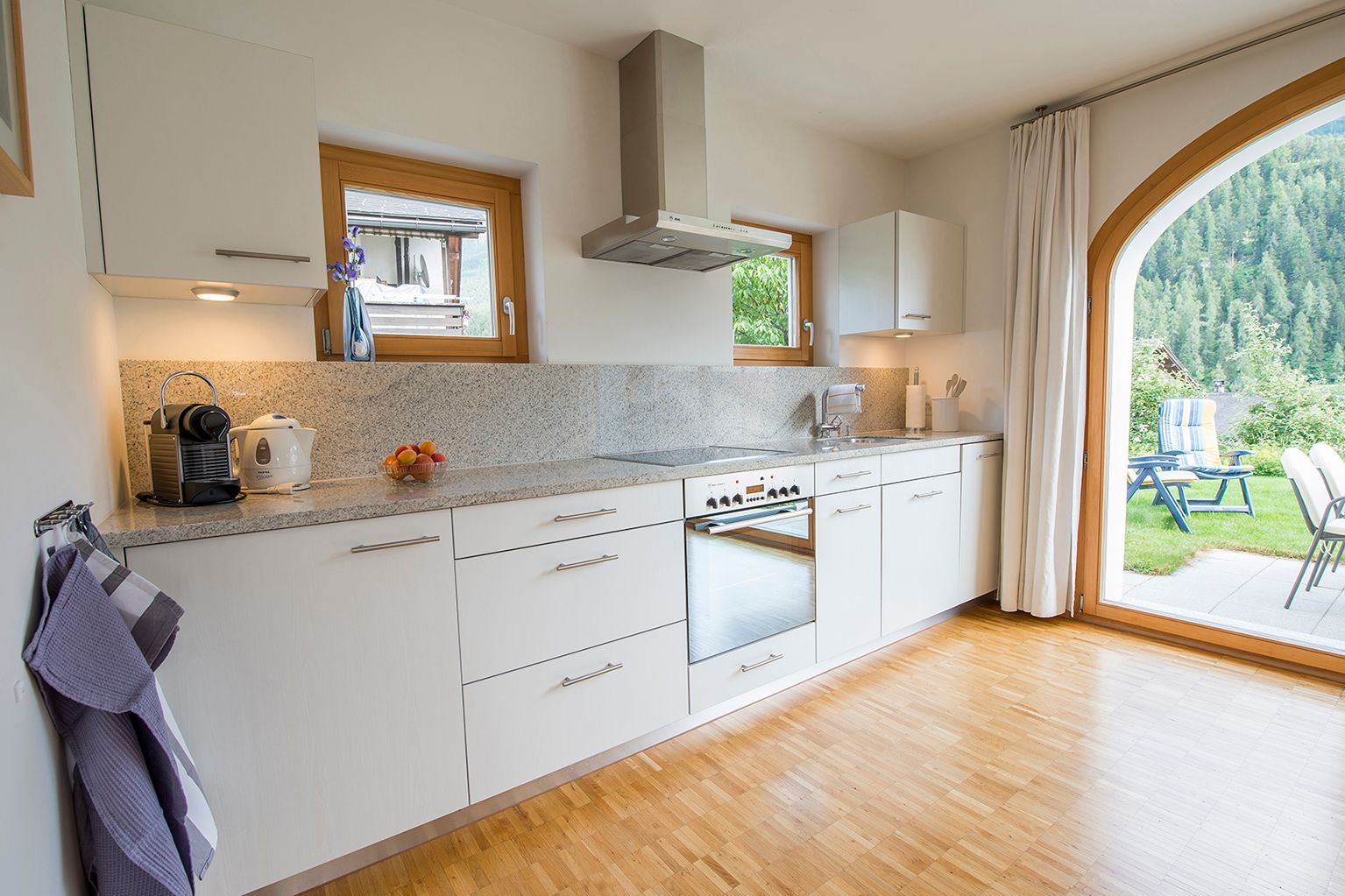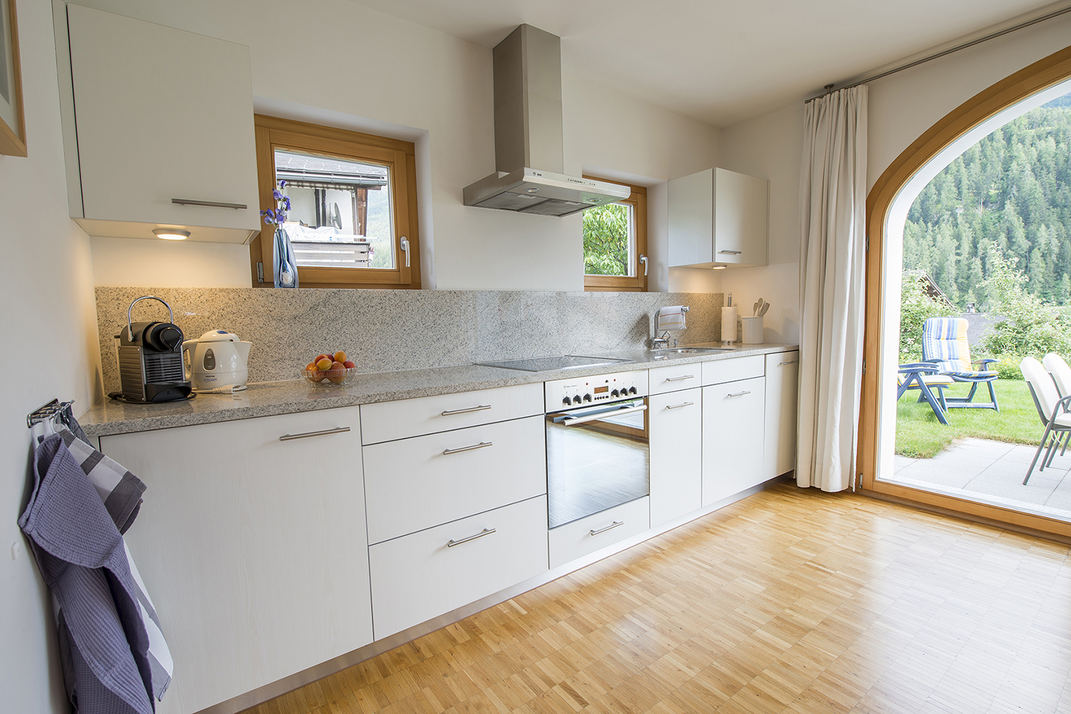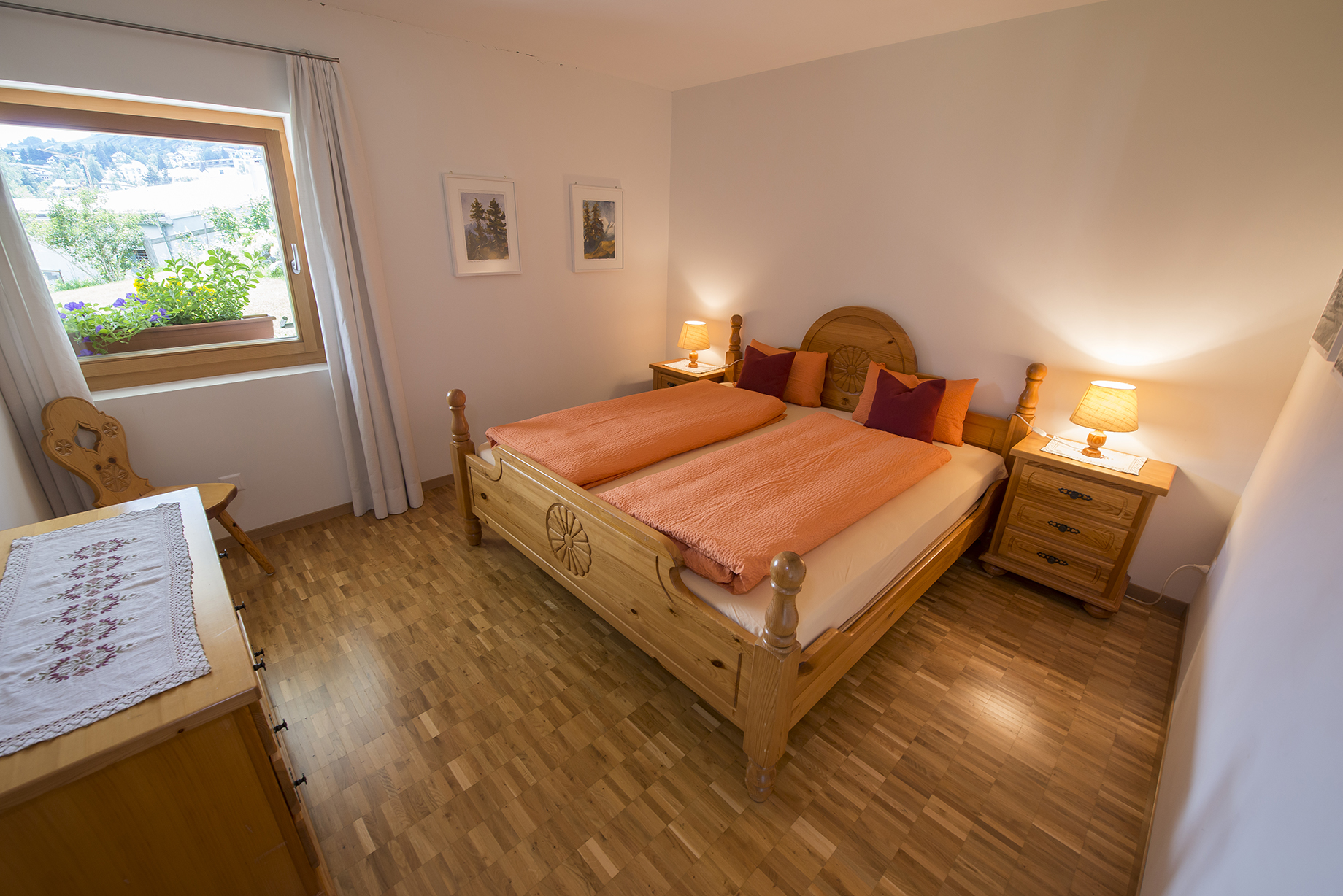 Im 2006 erbautes Einfamilienhaus an ruhiger, idyllischer und dennoch zentraler Lage mit schöner Aussicht. In der Nähe des alten Dorfkerns (Scuol sot), nur wenige Gehminuten vom Erlebnisbad entfernt. Wohnung mit eigenem Gartensitzplatz. Gemütliche 2 1/2 Zimmerwohnung mit Parkettboden, Bodenheizung, mit offener Küche, Wohn-Esszimmer mit Sofabett, SAT-TV, Radio, Internetanschluss (WLAN), 1 Doppelschlafzimmer, Badezimmer mit Dusche/WC, mit eigenem separaten Eingang. Leiden Sie an einer Gluten- oder Laktoseunverträglichkeit? In der Nationalparkregion und in unserer Wohnung sind Sie bestens aufgehoben. Die Küche ist mit diversen Gewürzen, Öl und Essig, wie auch Zucker und Kaffee ausgerüstet, zudem steht Ihnen eine Nesspressokaffeemaschine mit Kapseln zur Verfügung.