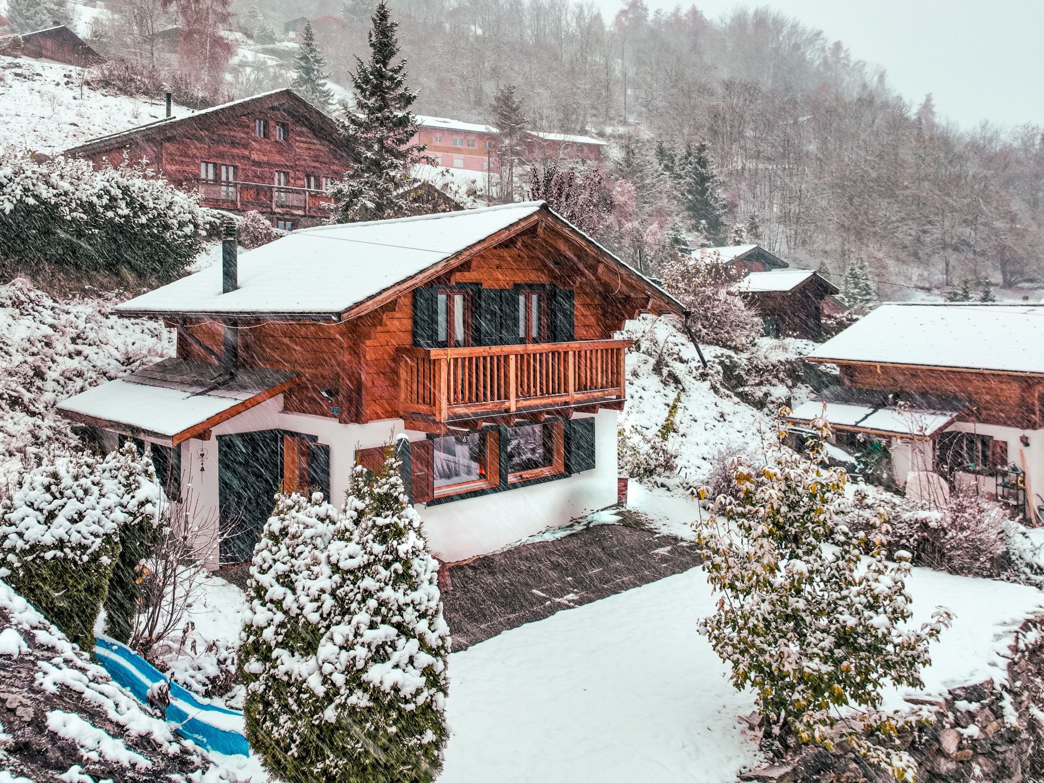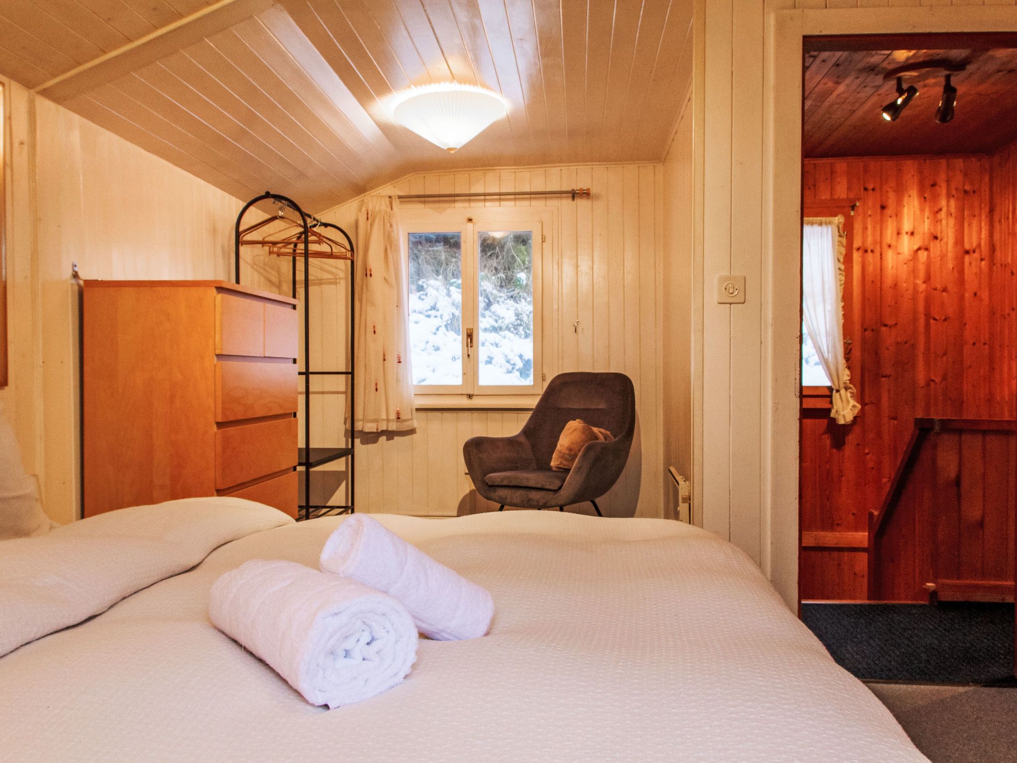 Chalet Grepon, 3-Zimmer-Chalet 60 m2 auf 2 Stockwerken, Westlage. Komfortabel eingerichtet: Eingang. Wohn-/Esszimmer. Offene Küche (Backofen, Geschirrspüler, 4 Glaskeramikplatten, Toaster, Wasserkocher, elektrische Kaffeemaschine, Racletteofen, Fondue Set (Käse)). Obergeschoss: 1 Kinderzimmer mit 1 x 2 Etagenbetten. Ausgang zum Balkon. 1 Zimmer mit 1 franz. Bett. Ausgang zum Balkon. Bad/WC. Heizung. Terrasse 16 m2, Garten 40 m2. Terrassenmöbel, Gartengrill. Sehr schöne Sicht auf die Berge. Zur Verfügung: Waschmaschine, Haartrockner. Internet (Wireless LAN, gratis). Bitte beachten: Nichtraucher-Unterkunft. Der Ofen ist mit Pellets zu versorgen.