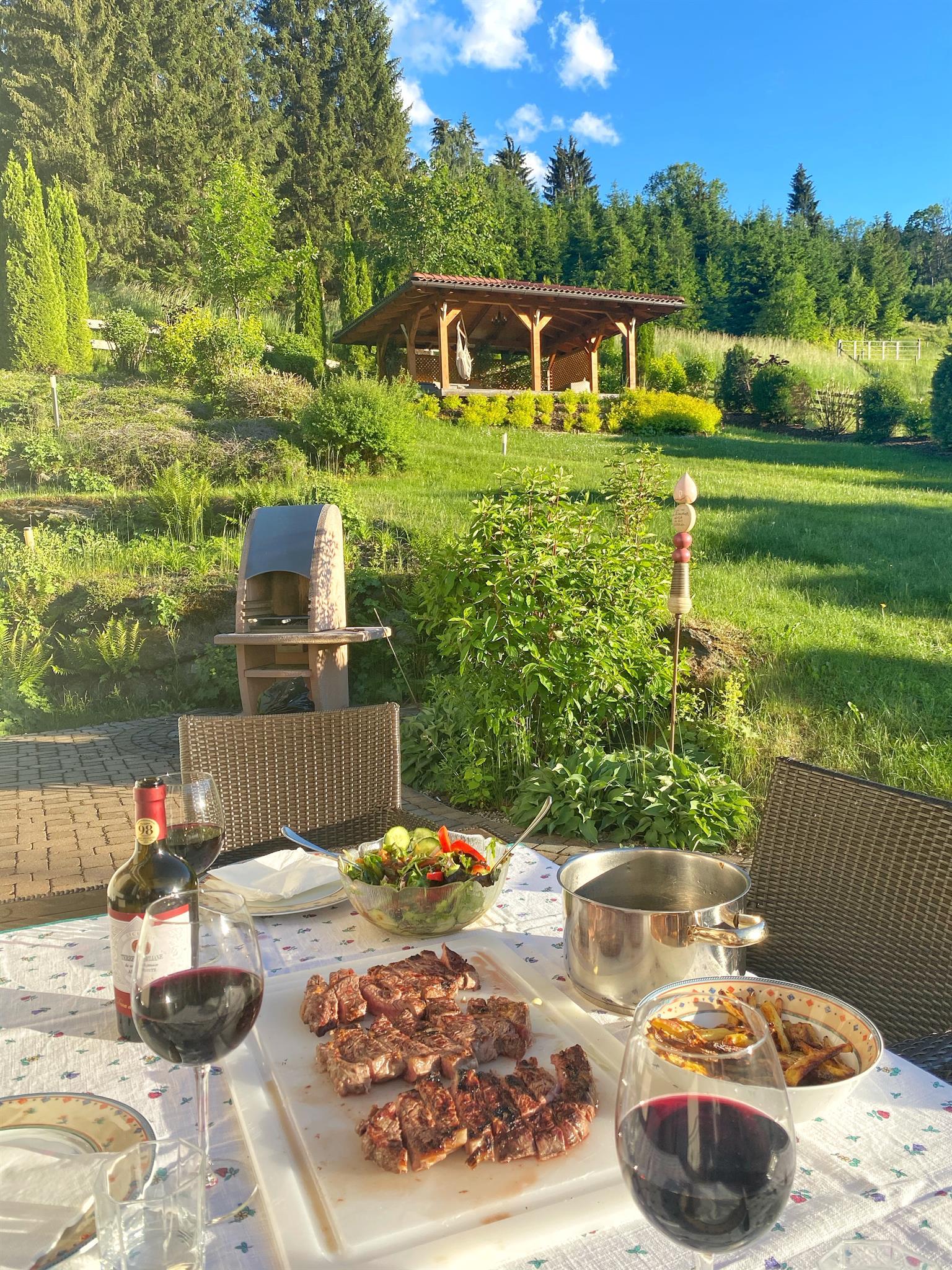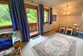 Das Apartment im Obergeschoss verfügt über 2 Schlafzimmer mit Doppelbett und 1 Wohnzimmer (mit Schlafsofa) und angrenzender Küche bietet Platz für bis zu sechs Personen. Das Apartment ist ausgestattet mit einem Flachbild-Sat-TV, einen Essbereich, eine gut ausgestattete Küche (Geschirrspüler, Kühlschrank, Backofen, Mikrowelle, Wasserkocher, Kaffeemaschine) und zwei eigene Bäder mit einer Dusche und Toilette. Ein Balkon mit Gartenblick und einer mit Bergblick. Gerne kann der Garten mitbenutzt werden, Grillmöglichkeit steht zur Verfügung.