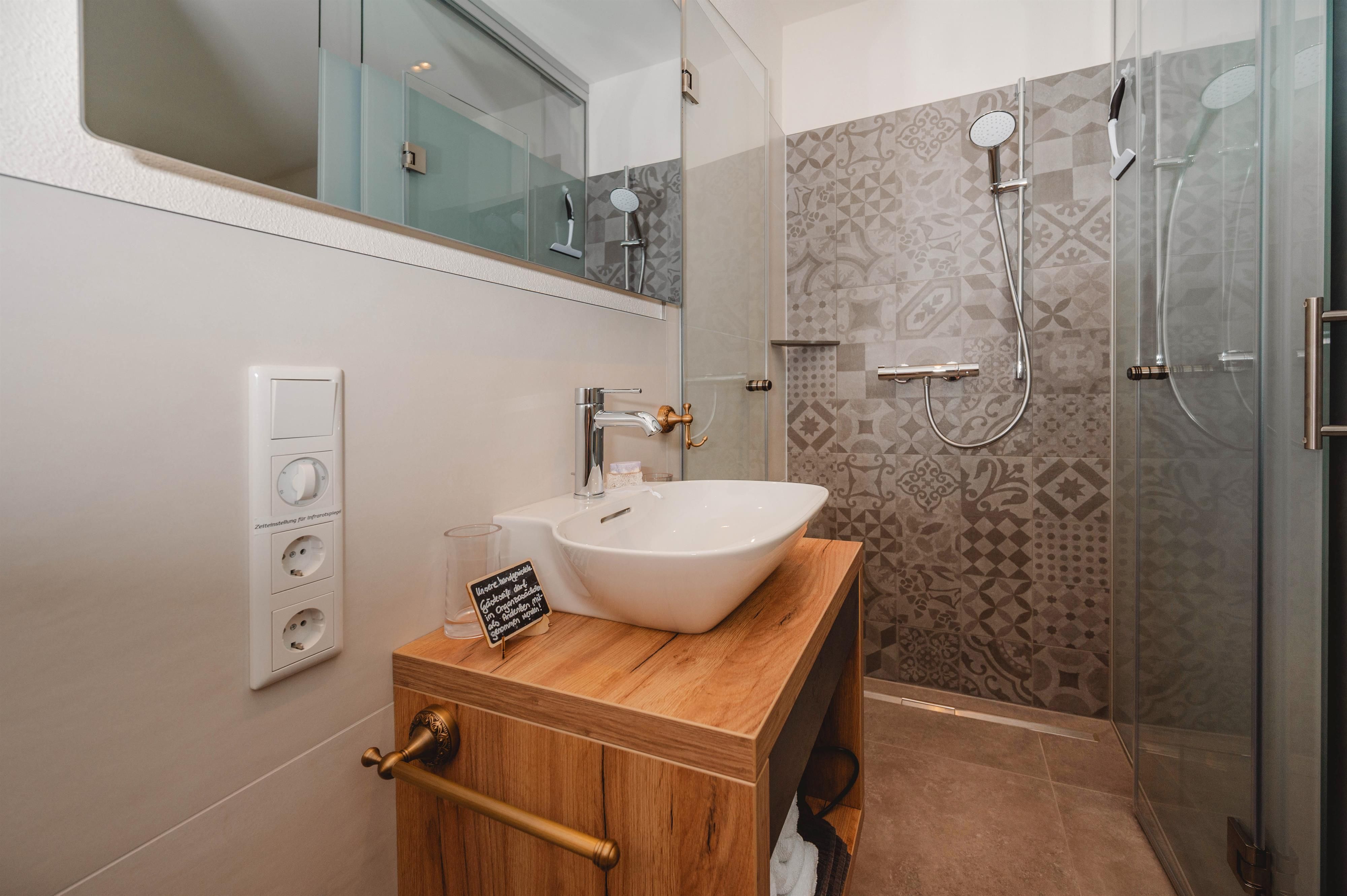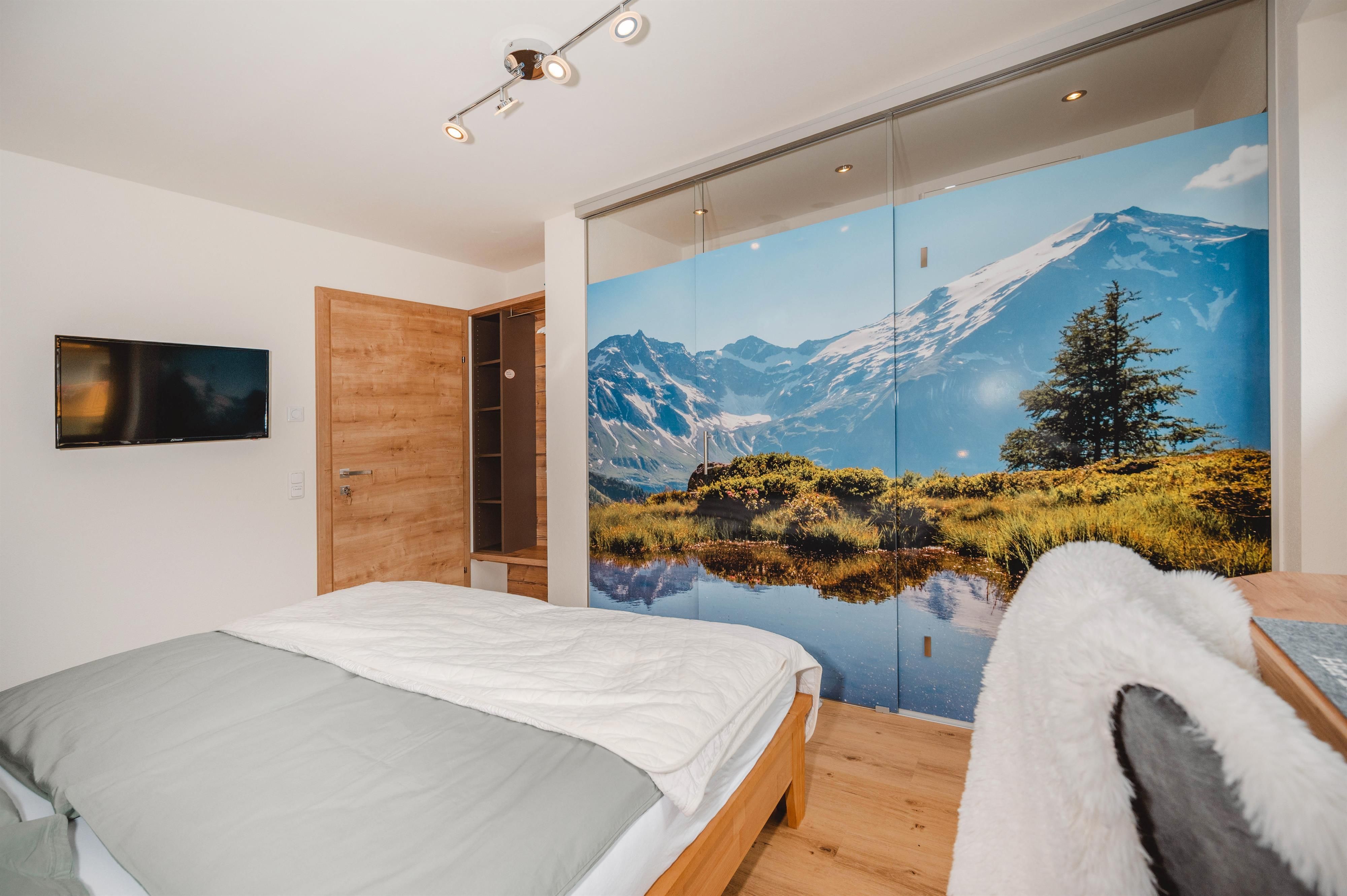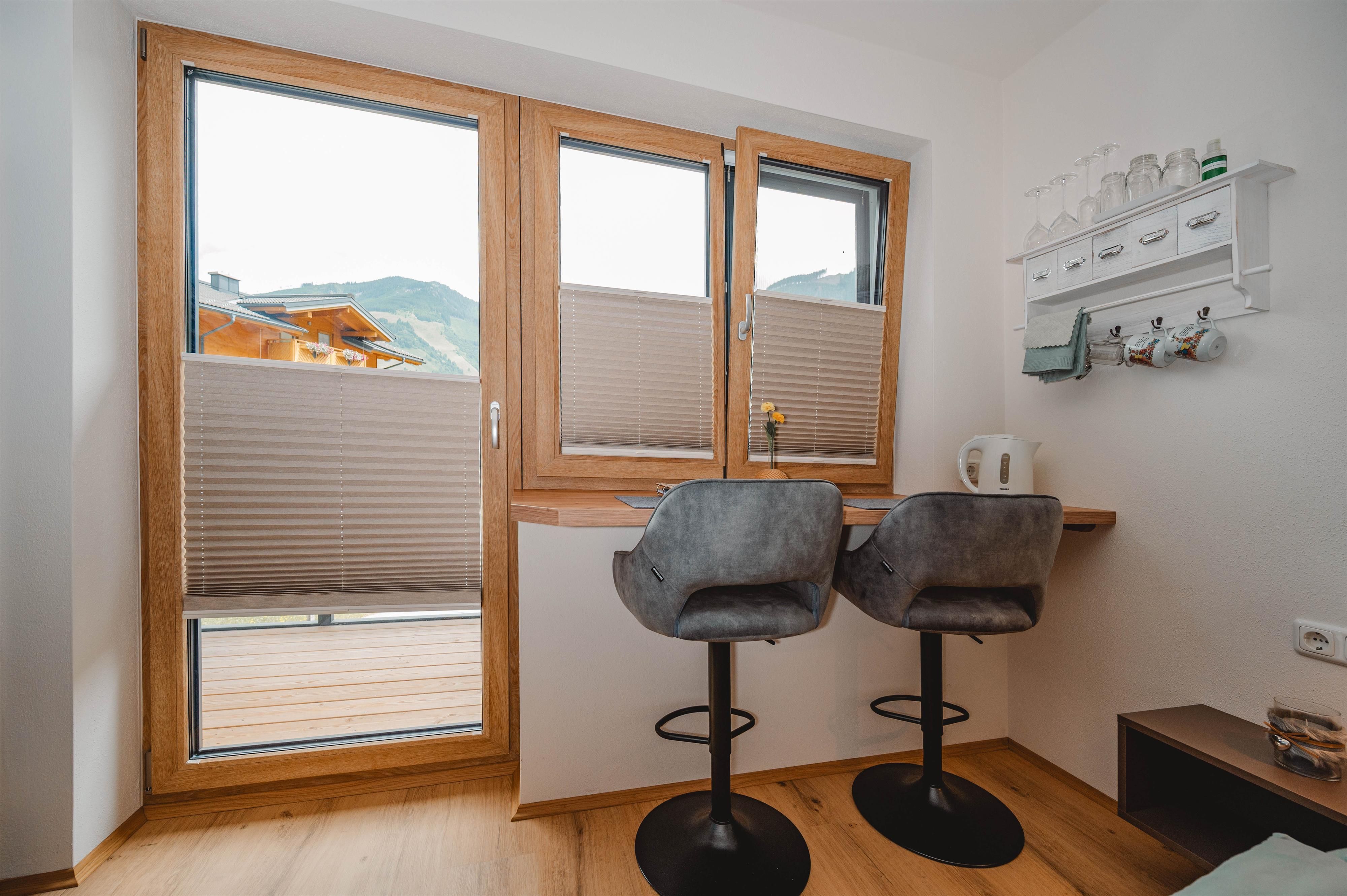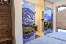 Unser neues, lichtdurchflutetes Doppelzimmer bietet vom Frühjahr bis zum Spätsommer angenehmes Morgenlicht. Eine stilvolle Glaswand mit Rauriser Bergwelt-Motiv und Schiebetür trennt das Zimmer vom modernen Bad mit ebenerdiger Dusche, WC und Infrarotspiegel. Zwei Barhocker und eine breite Fensterbank laden zum Lesen, Schreiben, Kaffeetrinken oder Fernsehen ein. Der großzügige Ostbalkon eröffnet den Blick auf die umliegenden Berge und die ruhige Straße sodaß er zum Verweilen einlädt. Auf Wunsch servieren wir ein Frühstück am Zimmer in Form eines liebevoll zusammengestellten Frühstückskorbs.Auf Anfrage stellen wir gern einen kleinen Kühlschrank bereit.Das Doppelzimmer kann auch als zusätzliches Schlafzimmer zum Apartment dazugebucht werden.