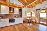 Ferienwohnung im OG mit 52 m² Wohnfläche und offenem Dachstuhl, hochwertige Einrichtung, Schlafzimmer mit Doppelbett, Bad mit Walk-in Dusche, Waschtisch, Handtuchwärmer, Fön, Kosmetikspiegel, schöner Wohn- und Essbereich mit direktem Zugang auf den Balkon (Westseite), Einbauküche komplett ausgestattet u.a. mit Geschirrspüler und Ceran-Kochfeld. Zu jeder Wohnung gehört ein PKW-Stellplatz.