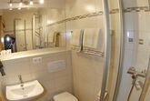 Wohnküche mit Essplatz und gemütliches Sofa, TV, Stereoanlage, 2 getrennte Schlafzimmer; in jedem Schafzimmer steht ein Doppelbett und jedes Schlafzimmer verfügt über ein modernes Bad mit Fön.