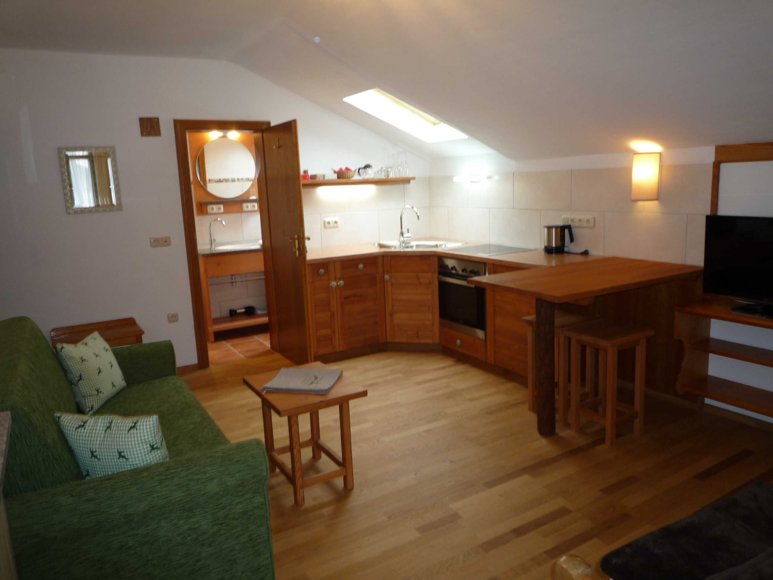 Der Esstisch ist an die Arbeitsplatte angebaut und auch fuer 2 Personen ausreichend.