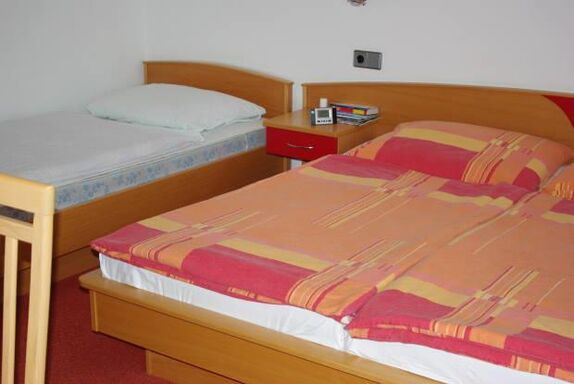 Dreibettzimmer mit Dusche/WC, Balkon. SAT-TV und ein Zimmersafe gehören in jedem Zimmer zur Standardausstattung. Kühlschrankbenützung ist im Aufenthaltsraum möglich.
