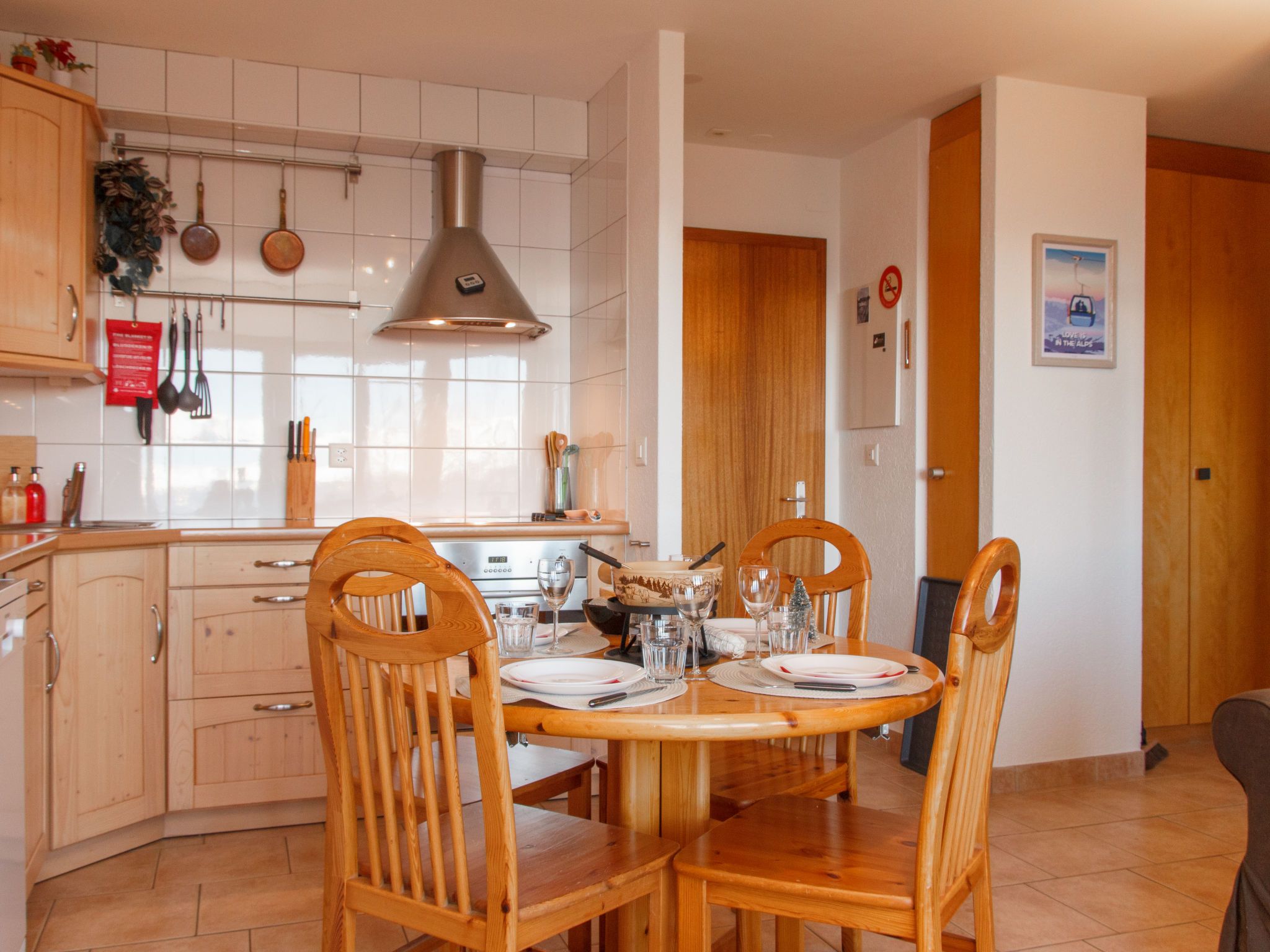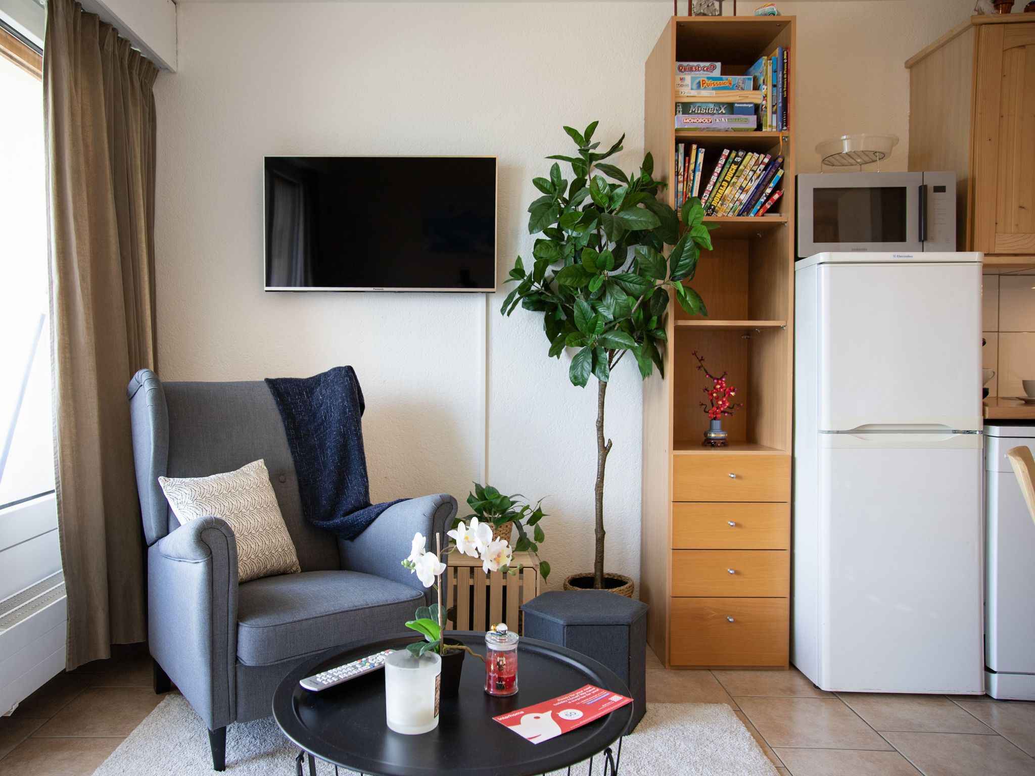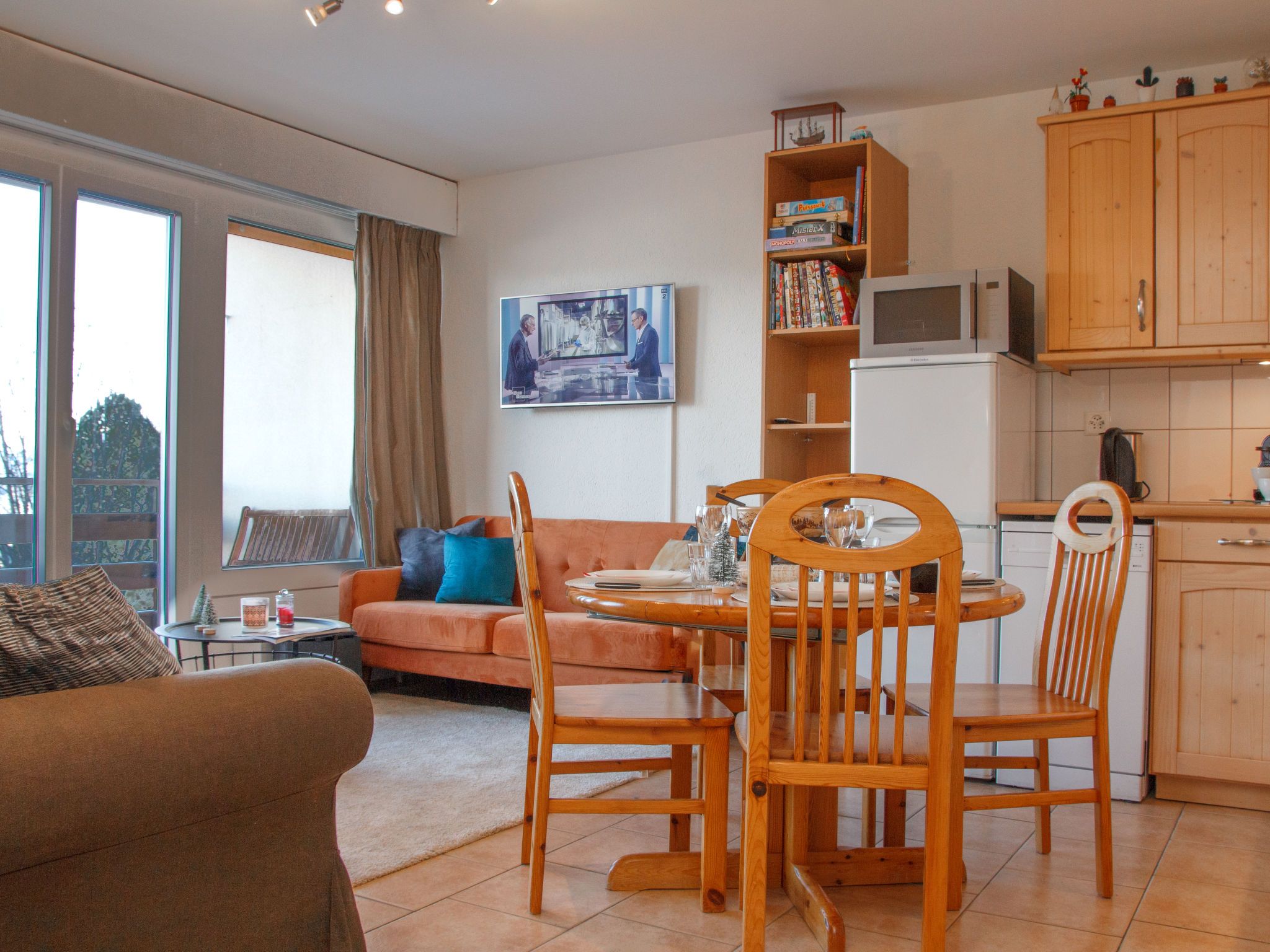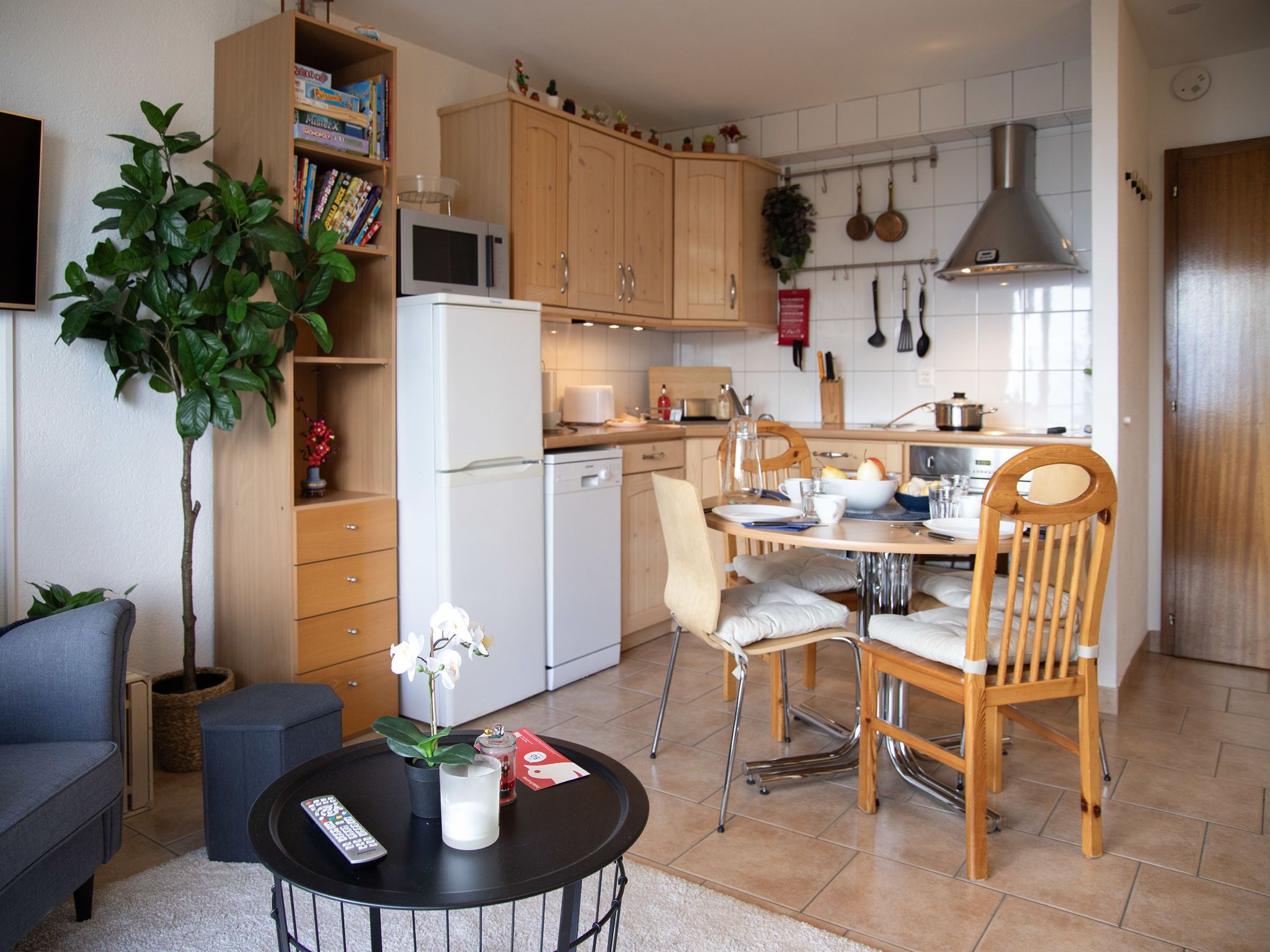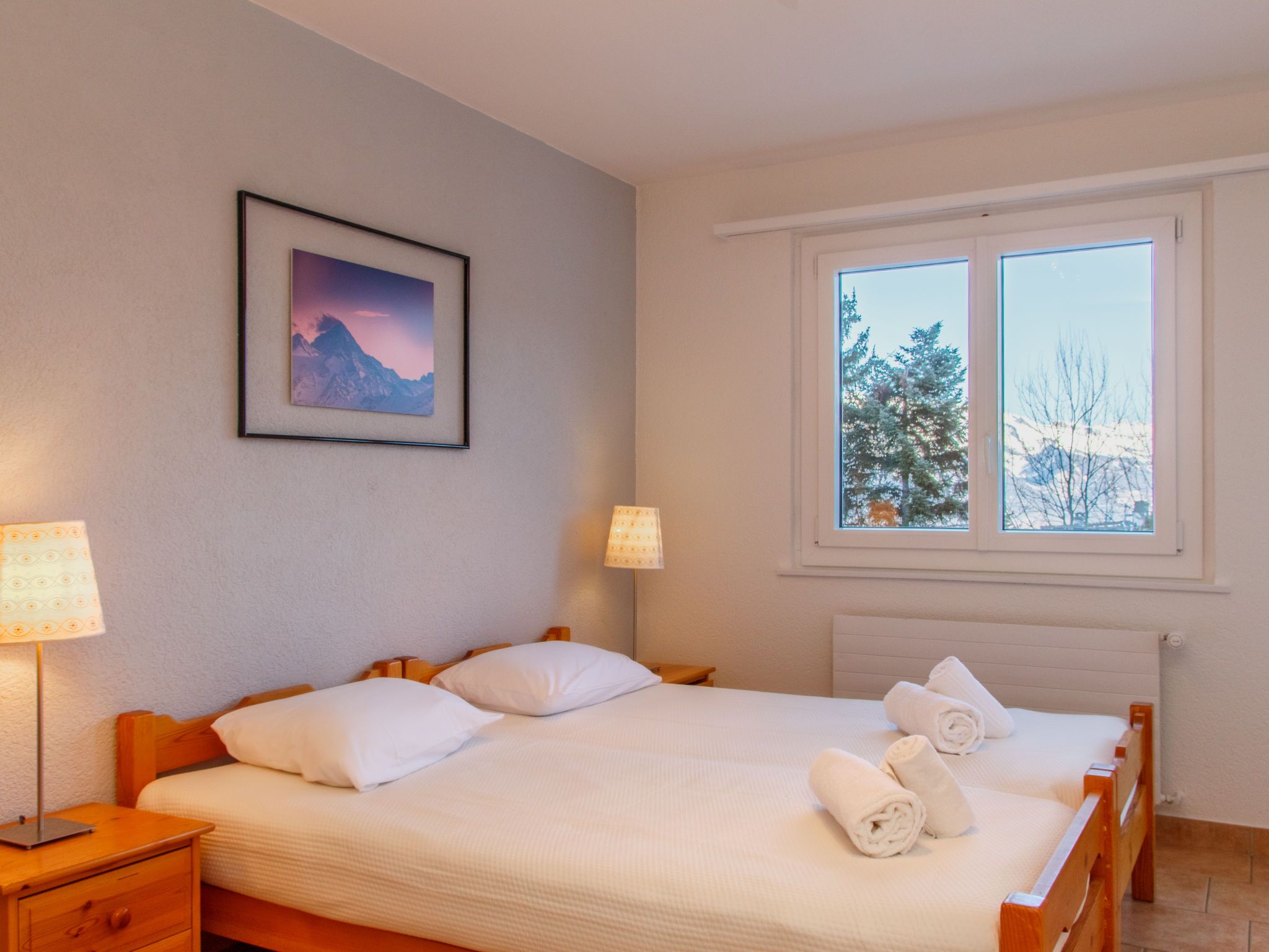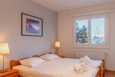 Montfort 9A, 2-Zimmer-Wohnung 40 m2 im 3. Stock. Schön eingerichtet: Wohn-/Esszimmer mit 1 Doppeldiwanbett (1 x 150 cm, Länge 190 cm), Kabel-TV (Flachbildschirm), Stereoanlage. Ausgang zum Balkon, Richtung Norden. 1 Zimmer mit 2 Betten (90 cm, Länge 180 cm). Ausgang zum Balkon. Offene Küche (Backofen, Geschirrspüler, 4 Induktionskochplatten, Mikrowelle, elektrische Kaffeemaschine, Kapseln für die Kaffeemaschine (Nespresso) extra, Fondue Set (Chinoise, Käse)). Bad/WC. Balkon, Nordlage. Balkonmöbel. Schöne Sicht auf die Berge und das Tal. Zur Verfügung: Haartrockner. Internet (WLAN, gratis). Bitte beachten: Nichtraucher-Unterkunft. Maximal 1 Haustier/Hund erlaubt.