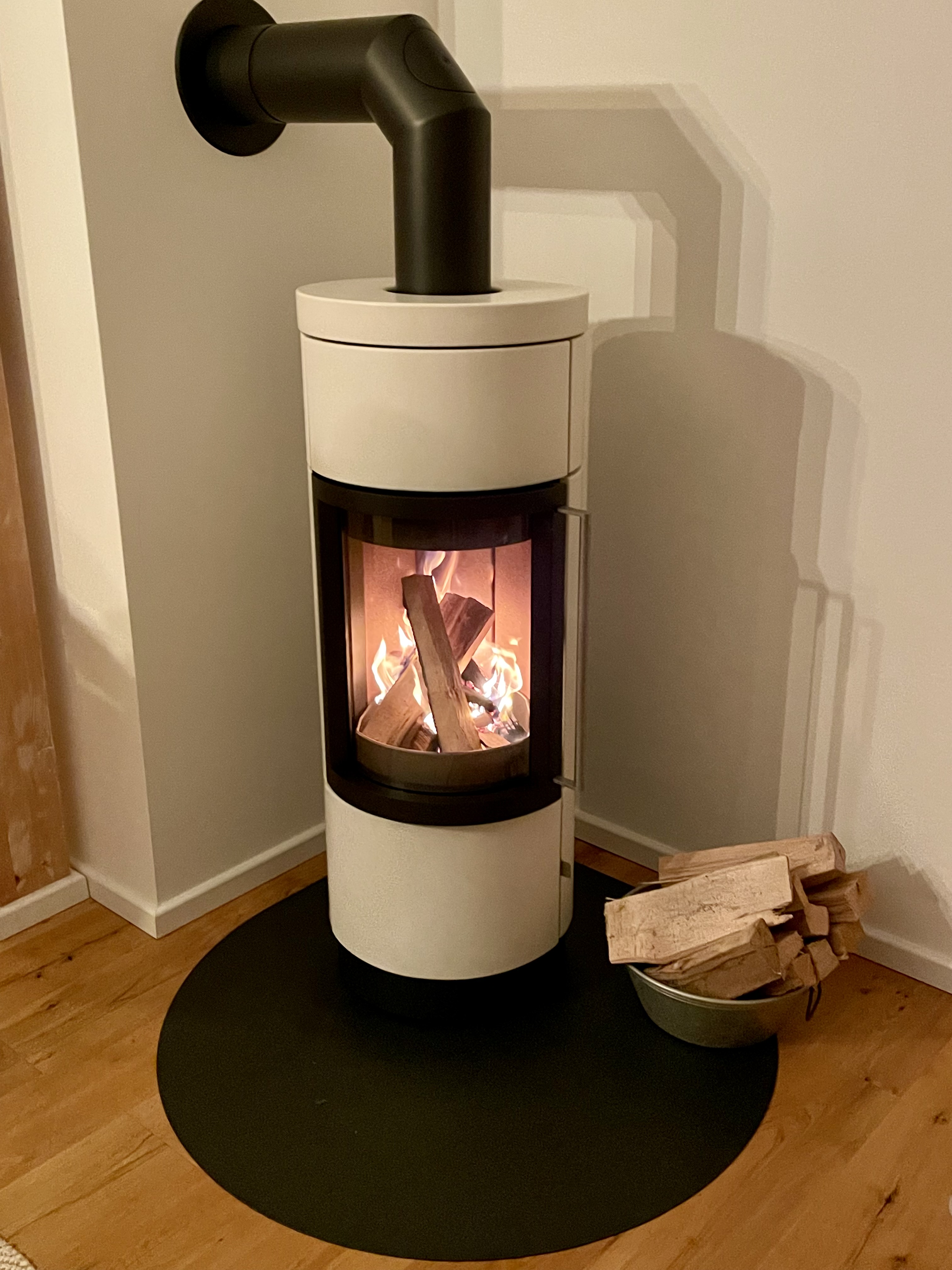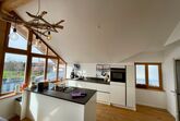 Eine nahezu identische Wohnung befindet sich im 1. OG, erreichbar über die Aussentreppe. Sie verfügt über eine außergewöhnlich große, offene, gemütliche Wohn-Küche mit Kamin und Weitblick, welche für alle 12 Gäste genügend Platz bietet. Im 1. OG befinden sich drei Schlafzimmer und Bad mit Dusche und WC. Die Küche ist vollständig ausgestattet: Block mit Induktionsherd, Backofen,