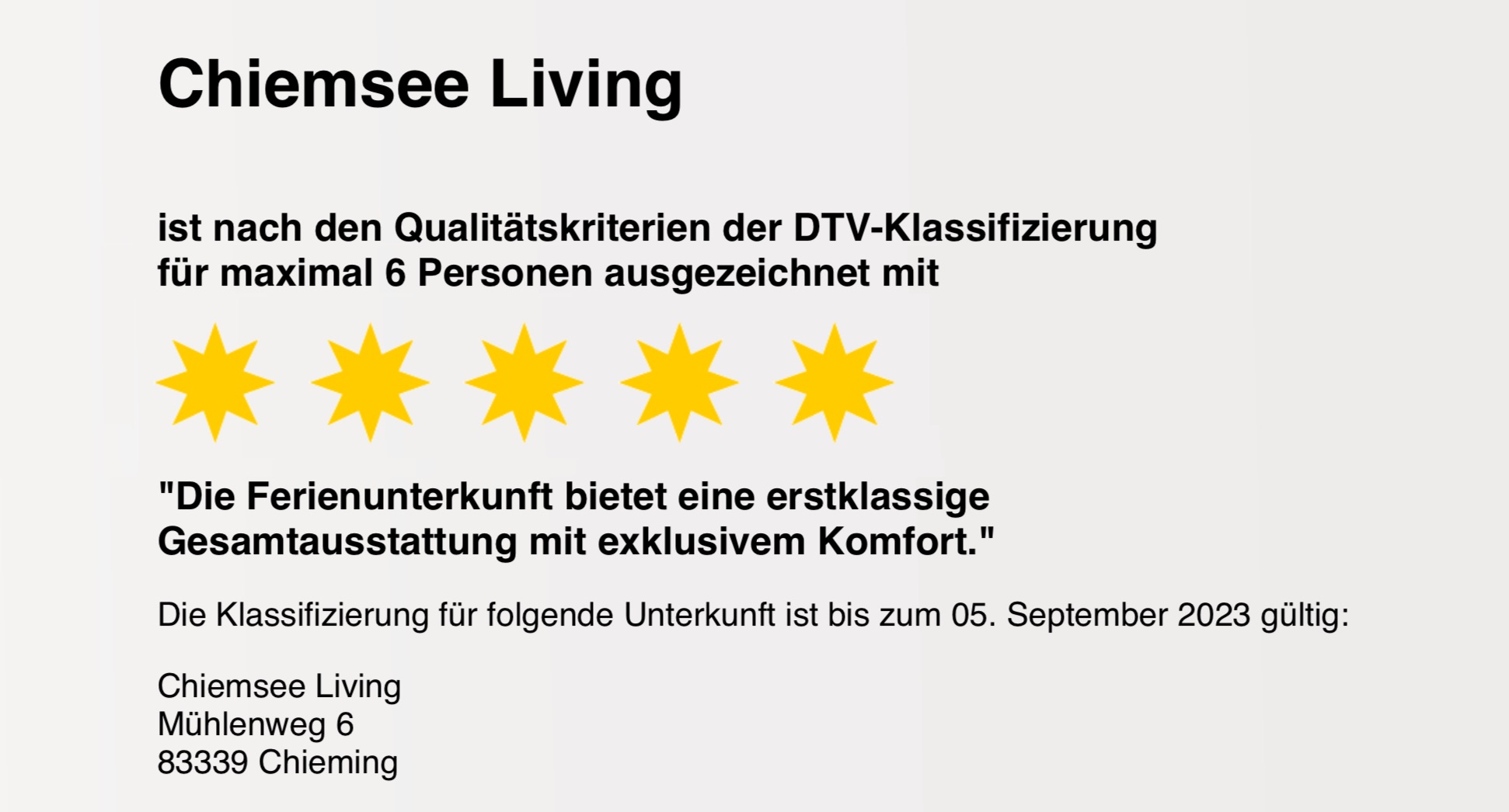 Chiemsee Living liegt ruhig, aber trotzdem zentral. Alles in wenigen Minuten zu Fuß zu erreichen: Chiemsee & Strandbad, Bäcker, Supermarkt & Bioladen, Strandbars, Cafés & Restaurants.