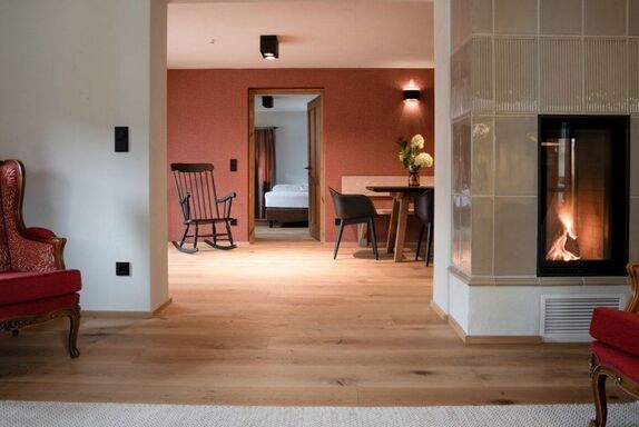 Unsere helle und großzügige Liesl ist perfekt für Familien und verfügt über ein Eltern- sowie ein Kinderschlafzimmer. Der große Holztisch bildet den Mittelpunkt, an dem gegessen, gelacht und gespielt wird. Hier kann man entspannt frühstücken und den Tag planen. Abends wird es dann mit einem prasselnden Feuer im Ofen auf der Couch so richtig gemütlich.