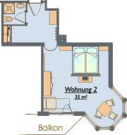 Diese Ferienwohnung verfügt über ein Wohnschlafzimmer, Südbalkon, großer Erker, Kochnische, DU/WC, LCD- TV schnelles Internet (Glasfaser) 35m²