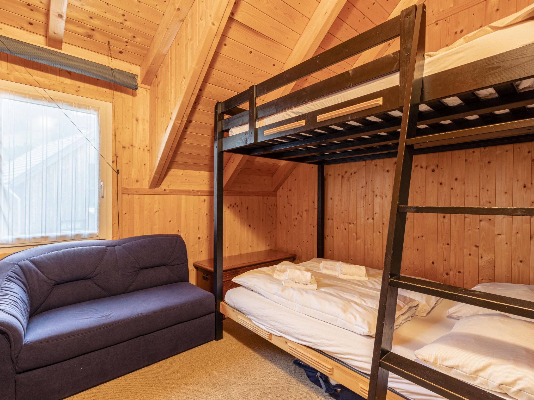 31 mit 2 Schlafzimmern für 6 Personen, 3-Zimmer-Chalet 60 m2. Hell, geschmackvoll eingerichtet: Wohn-/Esszimmer mit Essecke und Sat-TV (Flachbildschirm). 1 Doppelzimmer. 1 Zimmer mit 2 Betten und 1 x 2 Etagenbetten. Offene Küche (Backofen, Geschirrspüler, 4 Glaskeramikplatten, Toaster, Wasserkocher, Mikrowelle, elektrische Kaffeemaschine). Bad/WC, Dusche/WC. Heizung. Terrasse 18 m2. Terrassenmöbel. Schöne Sicht auf die Berge. Zur Verfügung: Haartrockner. Internet (Wireless LAN, gratis). Bitte beachten: Nichtraucher-Unterkunft. Beim Mietobjekt handelt es sich um ein Typenhaus bzw. Um eine Typenwohnung.