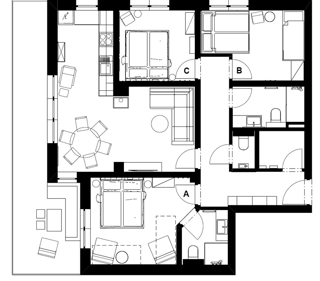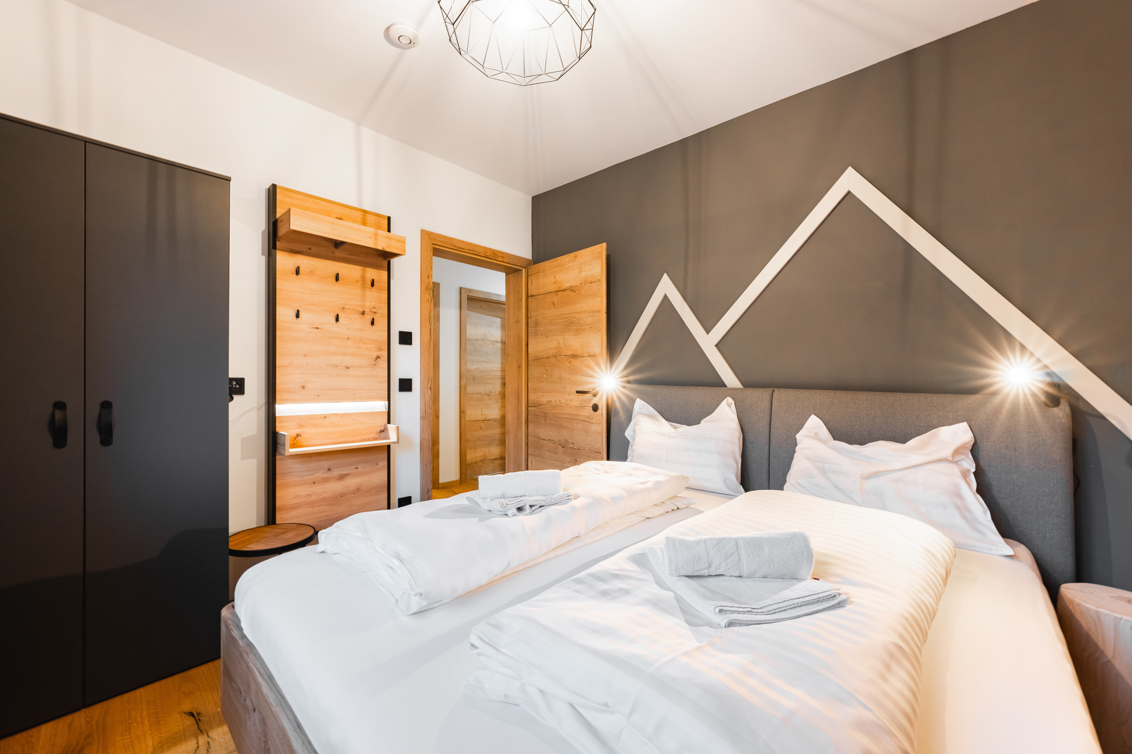 The modern 88 m² Aich Amadé apartment offers maximum comfort for families and groups of up to 8–10 people. Three bedrooms (3× double beds, 1× bunk beds) and two pull-out sofas.