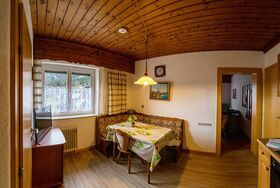 Geeignet für 1 -2 Personen. App.2= 30 m²,Rustikal eingerichtete Wohnküche mit Essecke. Schlafzimmer mit Doppelbett,  DU/WC, Wohnküche westseitig, Schlafzimmer mit Balkon Nord-Ostseitig. 1.Stock,FLAT/TV,32,digital Kabel LED