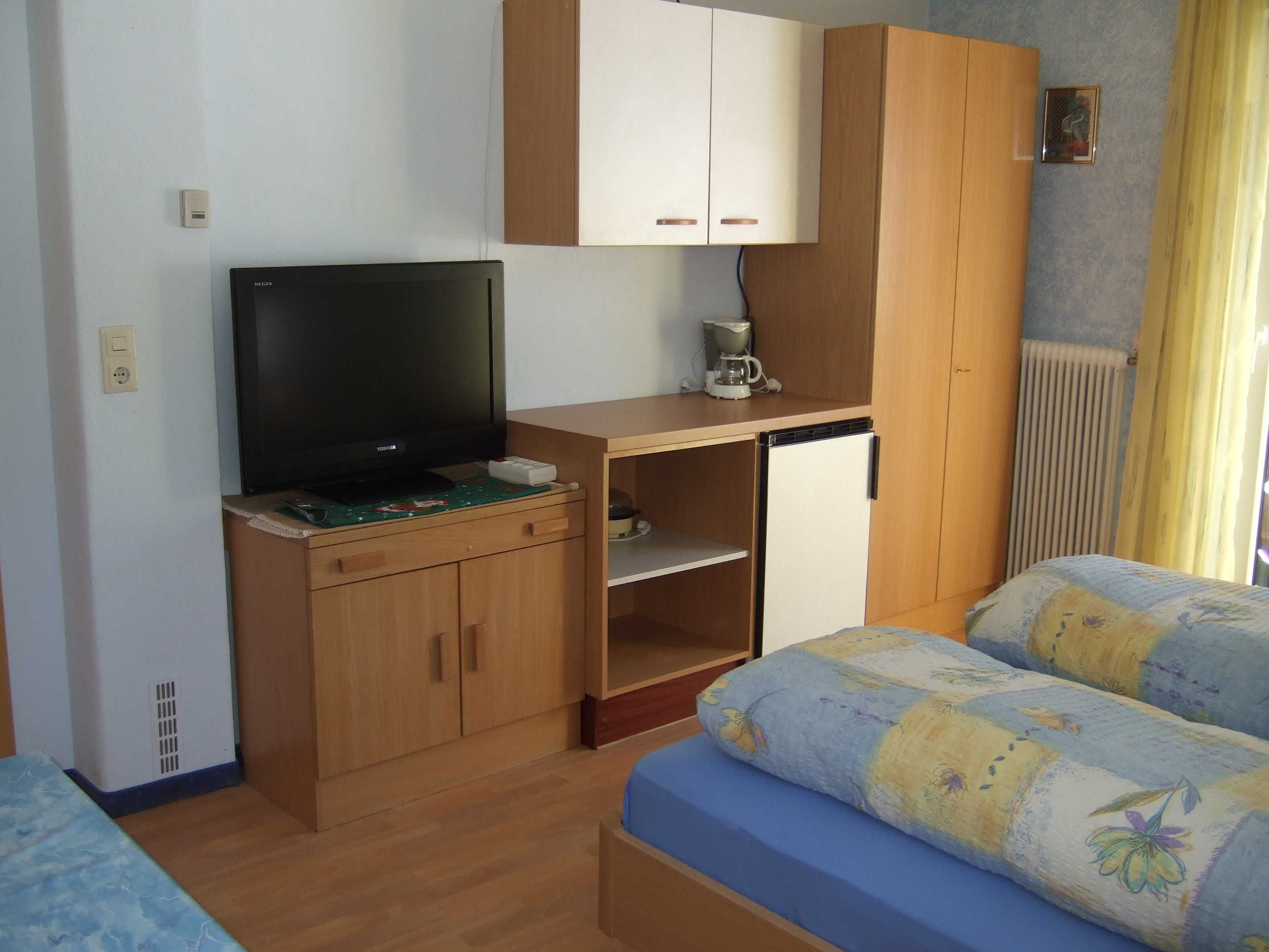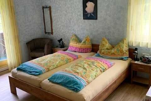 20 m², im.1.Stock,mit Dusche/WC und Balkon ,Doppelbett, Flachbildschirm 32 Kabel/TV, Radiowecker ,Essecke, kleiner Kühlschrank, Filterkaffeemaschine, auf Wunsch eine Cafissimo Pure Kapselmaschine, Sonderausstattung Zimmer: Wasserkocher, Toaster, Eierkocher, Geschirr und Besteck vorhanden, keine Kochmöglichkeit, keine Küche