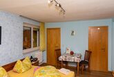Komfortabel eingerichtete Wohnung, großes Wohnzimmer mit Essecke und ausziehbare Doppelbettcouch, FLAT, Kabel/ TV, Schlafzimmer mit Doppelbett und Schlafcouch, komplett eingerichtete separate Küche, Dusche, WC, Diele, Balkon mit zwei Zugänge