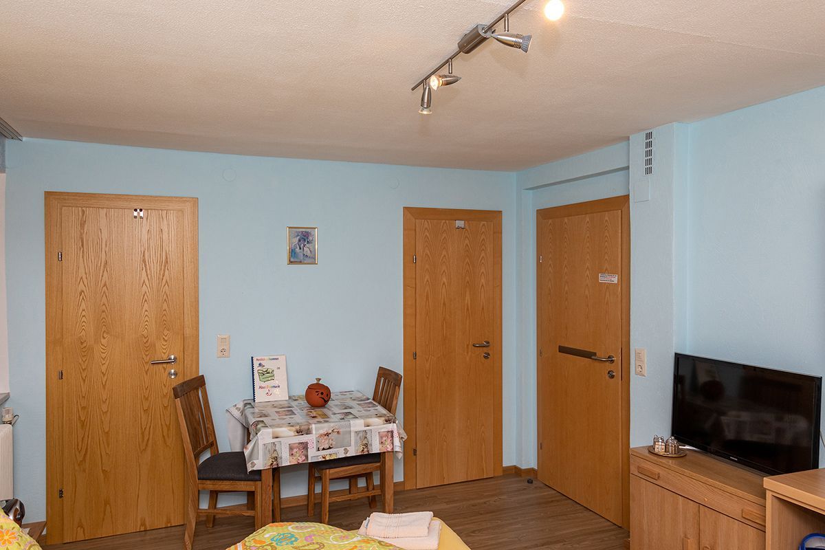 Doppelzimmer 6 Süd, 20 m², mit Dusche/WC getrennt, Balkon ,Doppelbett, 32LED Kabel/TV , Radiowecker ,Essecke, kleiner Kühlschrank, Filterkaffeemaschine und auf Wunsch eine Cafissimo Pure Kapselmaschine. Sonderausstattung: Wasserkocher, Toaster, Eierkocher, Geschirr vorhanden, keine Kochgelegenheit, keine Küche. Ist separat oder zusätzlich buchbar zu einem Appartement,.
