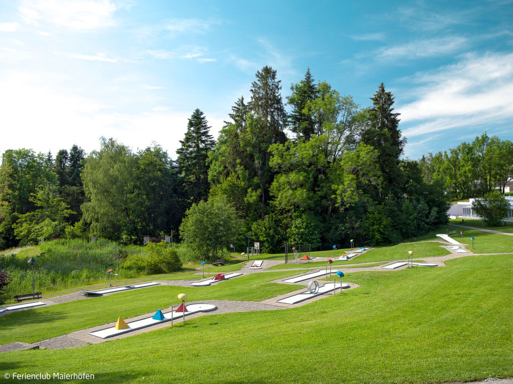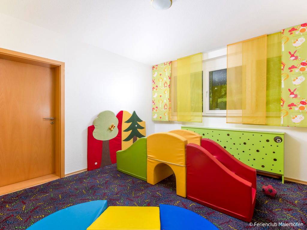 Kinderfreundliche Ferienanlage Ferienclub Maierhöfen. 115 Wohnungen in der Residenz. 1.5 km vom Zentrum von Maierhöfen, am Ortsrand, am Hang. Zur Mitbenutzung: Grundstück 45 ha, Hallenbad (25 x 10 m, 190 cm tief). Kinderbecken, Tischtennis, Basketball, Beachvolleyball, Grill, Kinderspielplatz. In der Anlage: Empfang, Restaurant, Bar, Sauna (extra). Dampfbad (extra). Kegelbahn (extra). Billard, Tischfussball, Waschmaschine (extra), Wäschetrockner (zur Mitbenutzung, extra), Fahrräder vorhanden (extra). Frühstück und Halbpension möglich (extra). Fussweg bis zum Haus. Zentralparkplätze. Bushaltestelle Maierhöfen Ferienzentrum 500 m. Bitte beachten: geeignet für Familien. Be- und Entladen am Ferienhaus möglich. Das Foto ist nur ein Hausbeispiel.