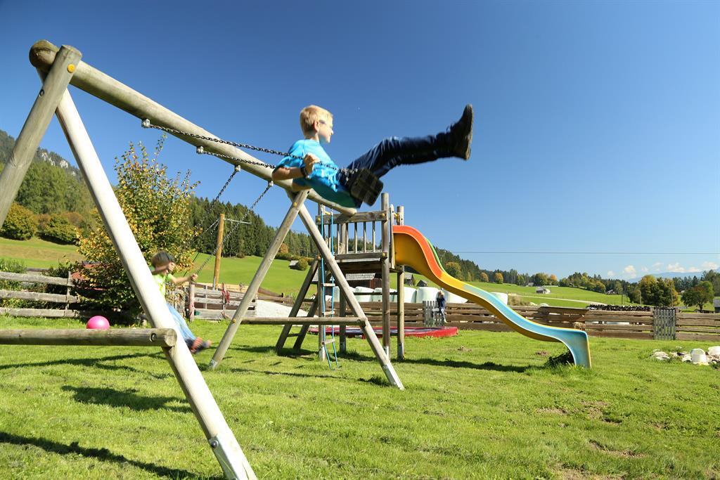 Urlaub am Bauernhof bedeutet bei uns viel Platz für Ihre Kinder. Im Sommer können sich unsere jüngsten Gäste am hauseigenen Spielplatz austoben oder auch mal im Stall die zahlreichen Tiere besuchen – sie freuen sich immer über Streicheleinheiten. Im Winter ist genügend Platz für Schneeballschlachten, Schneemannbauen und Toben im Winterwald.