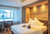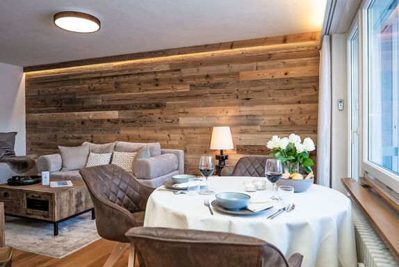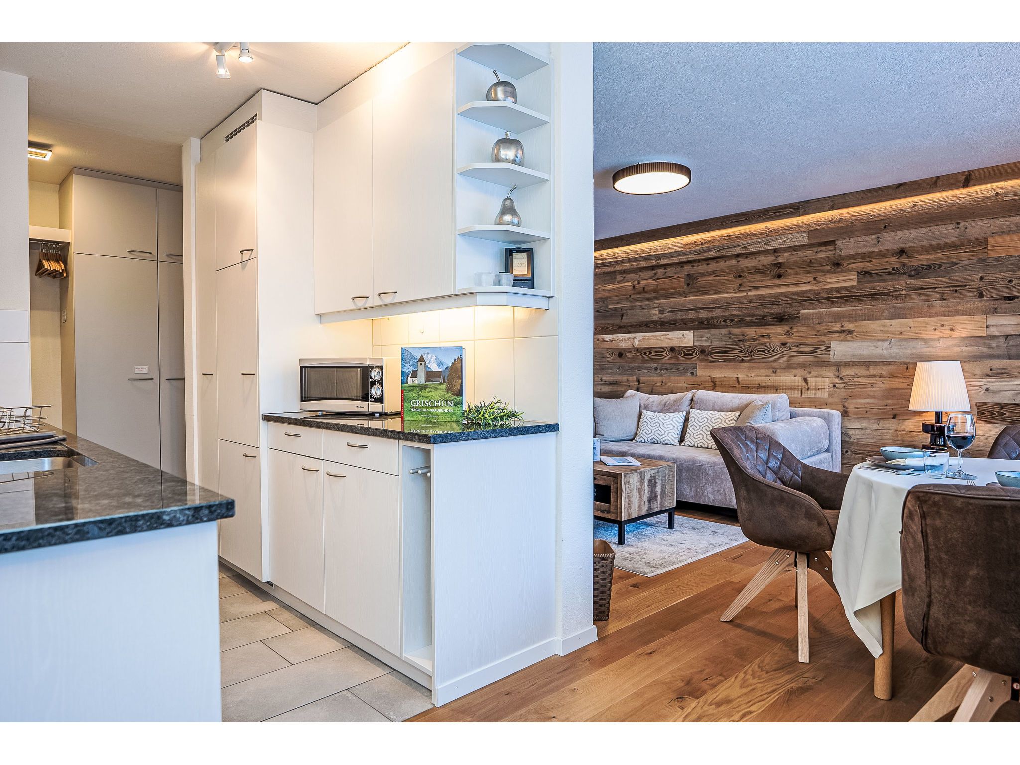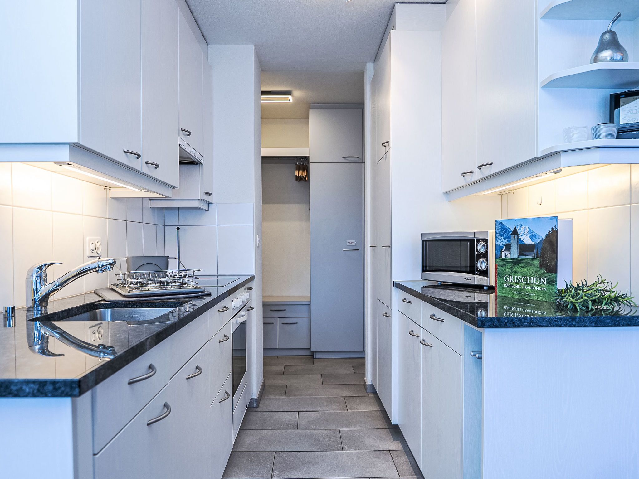 Chesa Fleury, 2-Zimmer-Wohnung 60 m2 im 3. Stock. Vollständig renoviert im Jahre 2025, komfortabel eingerichtet: Wohn-/Esszimmer mit Wintergarten mit Esstisch und TV (Flachbildschirm). Ausgang zum Balkon, Richtung Südwesten. 1 Doppelzimmer mit 1 franz. Bett (160 cm, Länge 200 cm). Offene Küche (Backofen, Geschirrspüler, 4 Glaskeramikplatten, Toaster, Wasserkocher, elektrische Kaffeemaschine, Kapseln für die Kaffeemaschine (Nespresso) extra, Fondue Set (Käse)) mit Esstisch. Ausgang zum Balkon. Bad/WC. Heizung. Parkettboden. Kleiner Balkon. Balkonmöbel. Seitliche Sicht auf die Berge und die Ortschaft. Zur Verfügung: Haartrockner. Internet (WLAN, gratis). Garage (1 Auto), Höhe 195 cm, Breite 205 cm. Bitte beachten: Nichtraucher-Unterkunft, Nichtraucher-Haus.