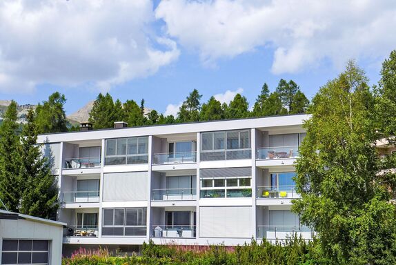 St.Moritz Bad: Schönes Mehrfamilienhaus Chesa Fleury, auf 3 Stockwerken, renoviert im Jahre 2011. Im Ort, 700 m vom Zentrum von St.Moritz-Bad, 600 m vom See, 1.2 km vom Skigebiet, in einer Sackgasse. Im Hause: Fahrstuhl, Skiraum, Zentralheizung, Waschmaschine, Wäschetrockner (zur Mitbenutzung, extra). Gemeinschaftsgarage. Einkaufsgeschäft 750 m, Supermarkt 1.1 km, Restaurant 350 m, Bäckerei 900 m, Café, Fahrradverleih 750 m, Bushaltestelle St. Moritz Bad, Giand'Alva 80 m, Bahnstation St. Moritz 2.4 km, Hallenbad 750 m, Thermalbad Heilbadzentrum St.Moritz 900 m, See St. Moritzer See 600 m. Golfplatz (18 Loch) 8 km, Surfschule 5.6 km, Tennis 1.3 km, Tennishalle 1.3 km, Minigolf 750 m, Reitstall 3.2 km, Wanderwege ab Haus, Radweg 50 m, Luftseilbahn 1.2 km, Skilift 1.2 km, Skipisten 1.2 km, Skiverleih 750 m, Skibushaltestelle 80 m, Skischule 2.4 km, Kinderskischule 2.4 km, Schlittelbahn 6 km, Langlaufloipe 400 m, Eisfeld 750 m, Kinderspielplatz 850 m. Nahe gelegene Sehenswürdigkeiten: Segantini Museum 2.6 km, Engadiner Museum 1.5 km, Mili Weber-Haus 3.2 km, Olympia Bob Run mit Museum 3 km, Nietzsche Museum in Sils-Maria 9.9 km. Bekannte Skigebiete sind gut erreichbar: Corviglia Piz Nair 1.2 km, Corvatsch - Furtschellas 6.8 km, Diavolezza - Lagalb 20.1 km. Bekannte Seen in der Umgebung sind gut erreichbar: St.Moritzer See 600 m, Silvaplaner See 5.6 km, Silser See 9.8 km. Wandergebiete: Stazerwald & Stazersee, Corviglia Piz Nair, Muottas Muragl.