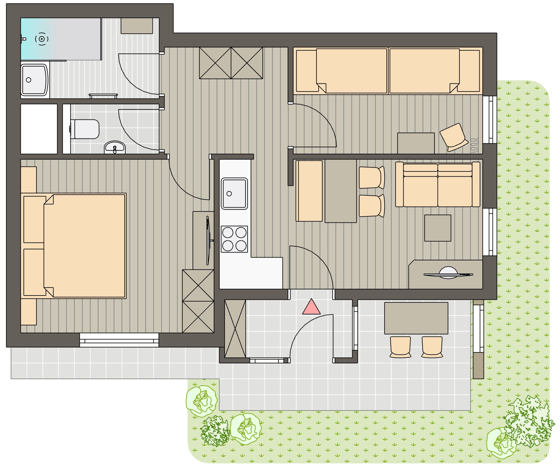 Alle Ferienwohnungen mit Dusche und getrenntem WC, alle Räume mit Balkon oder Terrasse. Erstausstattung mit Tisch-, Bett- und Toilettewäsche inklusive. SAT-TV, Radio, Telefon, W-Lan, Kaffeemaschine, Cremesso Kapselmaschine, Mikrowelle, Spühlmaschine.