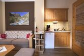 1 Wohnschlafraum mit Ausziehcouch und Kochnische, große Dusche mit Regenbrause, WC, Vorraum.