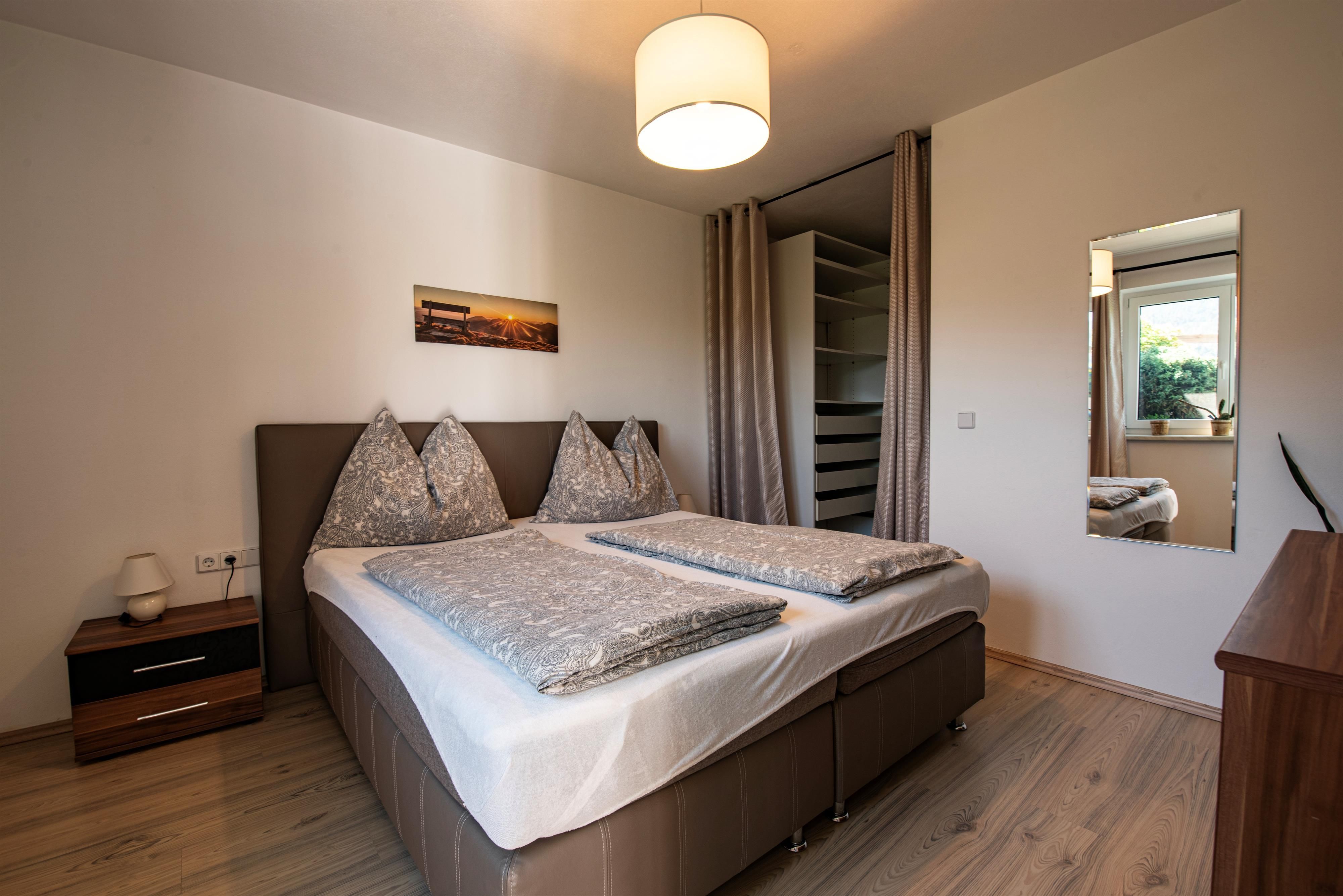 Das Apartment verfügt über 2 Schlafzimmer mit Boxspringbetten, Sat-TV, einer voll ausgestatteten Küche mit Geschirrspüler, Gasherd, Backofen, Kühlschrank mit Gefrierfach und einer Mikrowelle. Die Küche ist in den großen offenen Wohnbereich inkl. Essecke integriert. Ein Holzofen im Wohnbereich rundet die Gemütlichkeit ab. Das Bad ist sehr grosszügig angelegt und besteht aus einer Dusche, Eckbadewanne, Waschtisch, WC sowie einer Waschmaschine. Im Eingangsbereich findet sich noch ein weiteres WC.