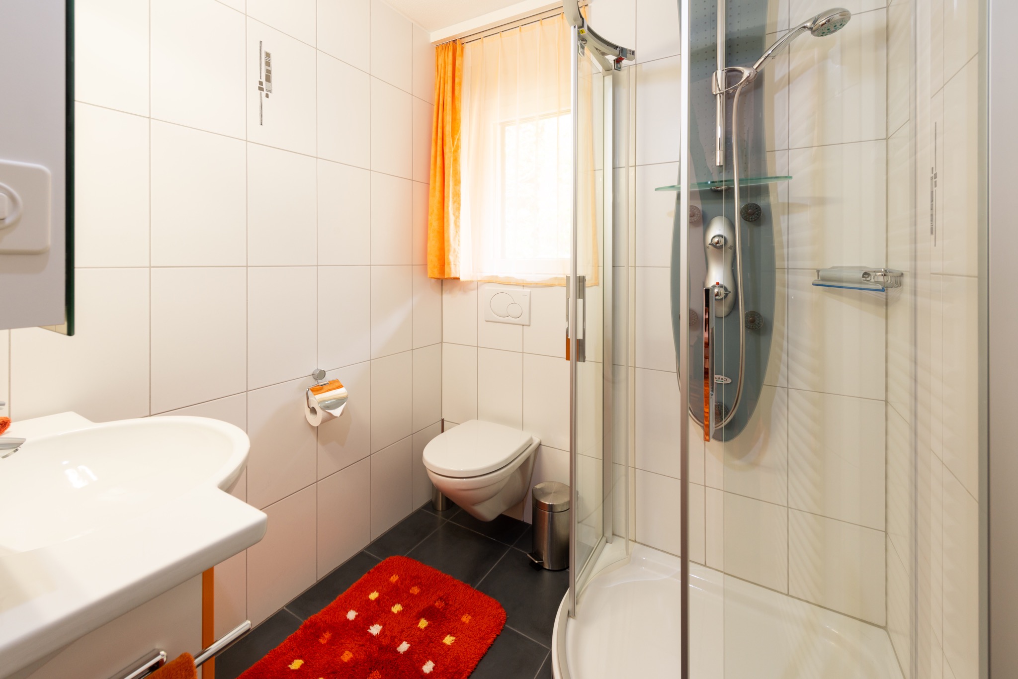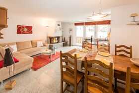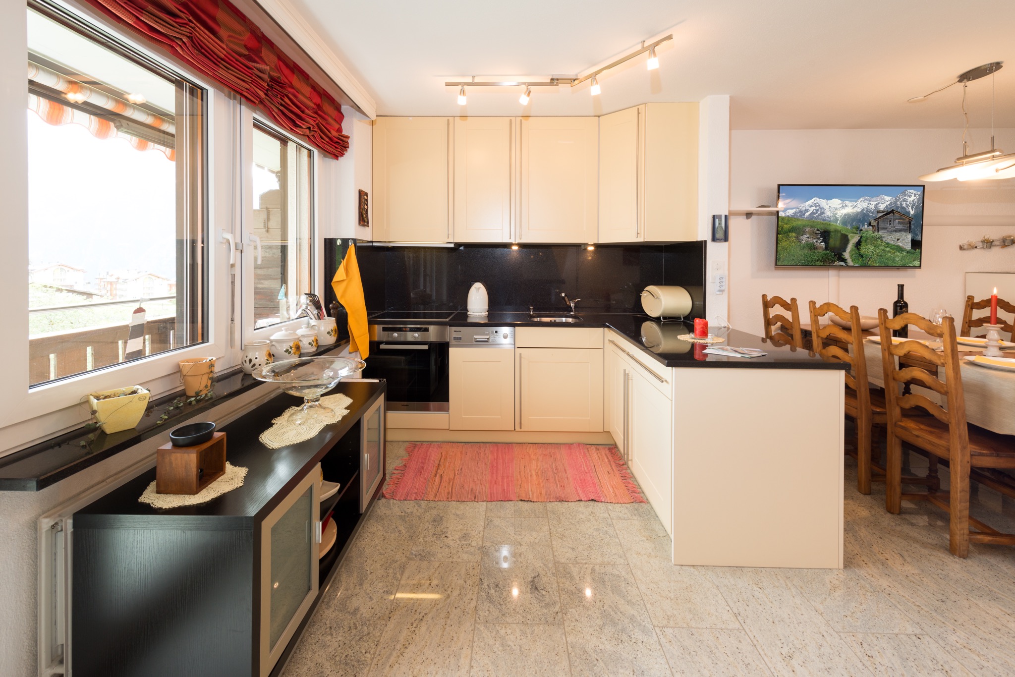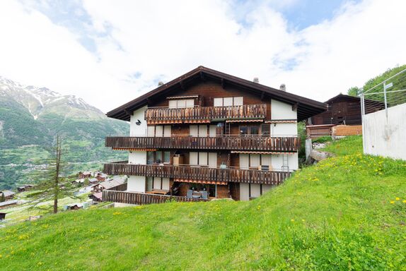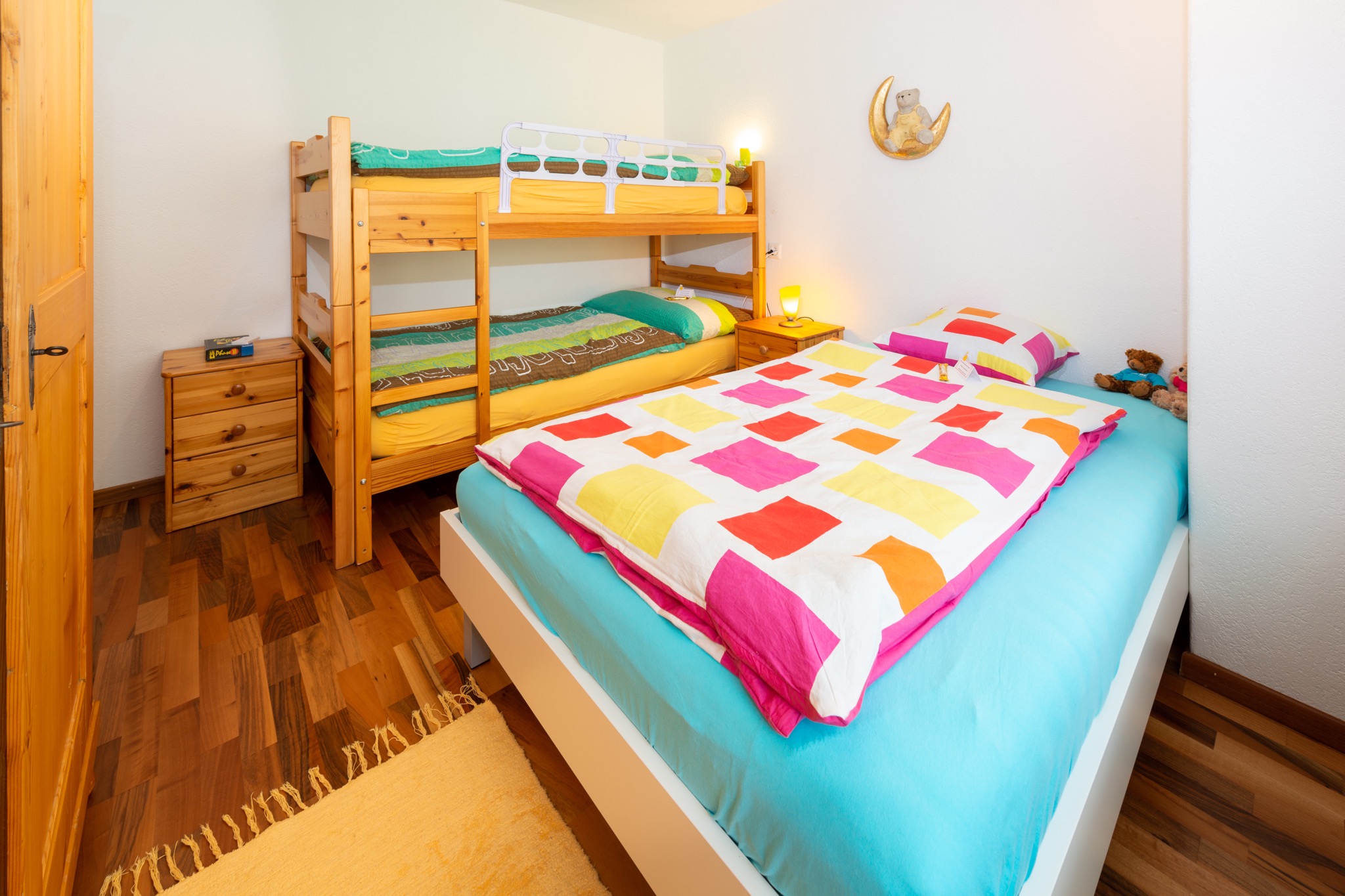 Die 3-Zimmerwohnung befindet sich in der Nähe des Dorfzentrum in einem Mehrfamilienhaus im 3 Stock mit Lift. Die Wohnung verfügt über 2 Schlafzimmer mit je 2 Betten (1 Schlafzimmer mit SAT-TV). Ein Schlafzimmer verfügt über ein separates Badezimmer mit WC und Dusche.