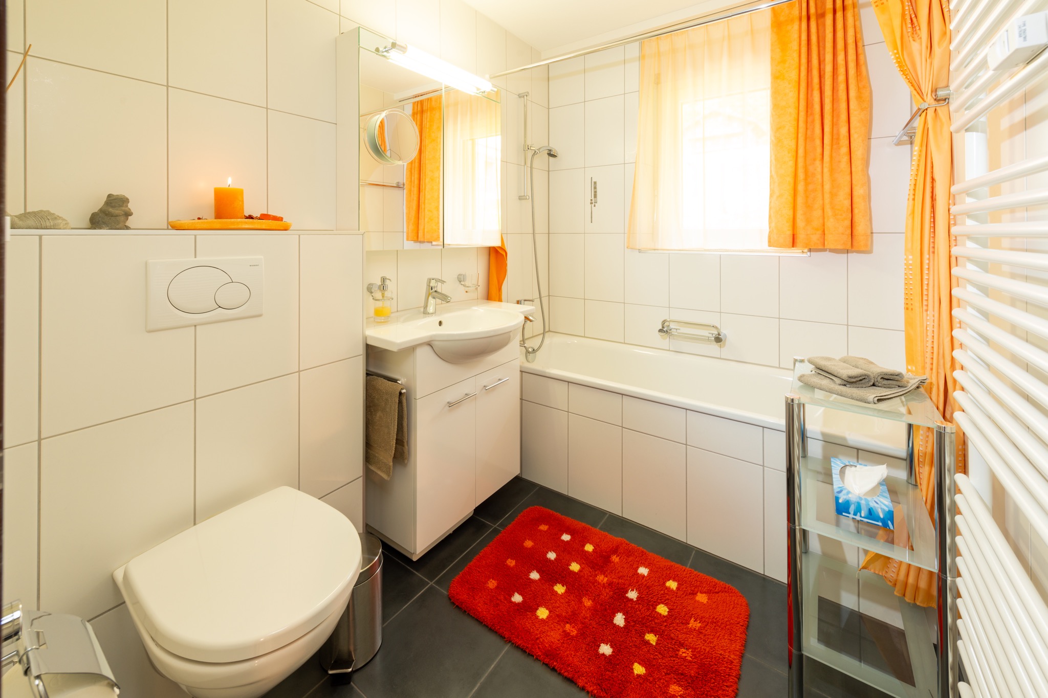 Das grosse Wohnzimmer mit Essecke ist sehr gemütlich möbliert. Sat-TV und Wireless-Internet-Zugang gehören zu unserer Grundausstattung. Die komfortable und gut ausgestattete Küche mit Geschirrspüler und vielen Extras. Die Wohnung verfügt über zwei Badezimmer mit WC, Badewanne, Dusche und Lavabo.