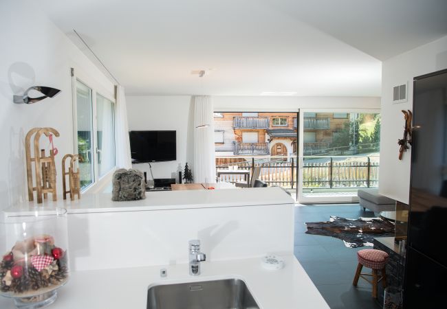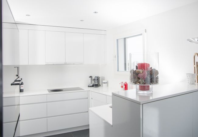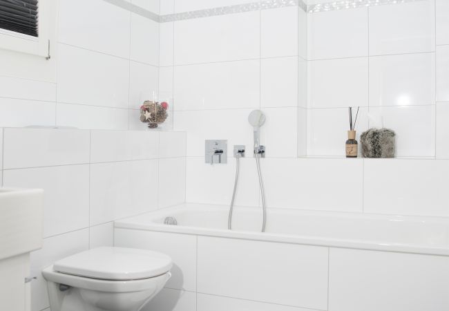 Die grosszügige Ferienwohnung ist elegant eingerichtet und bietet Platz für bis zu vier Personen. Zwei behagliche Schlafzimmer mit hochwertigen Doppelbetten, zwei moderne Badezimmer mit Badewanne oder Dusche sowie eine voll ausgestattete Küche mit allem, was Sie für genussvolle Stunden brauchen – inklusive Geschirrspüler, Backofen, Kaffeemaschine sowie Raclette- und Fondue-Set.
