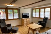 Im Wohnzimmer befindet sich ein 3-er Sofa, zwei Relax-Sessel, ein Beistelltisch sowie ein Fernseher mit DVD-Player. Der Wohnbereich hat einen Laminatboden. Der Eingangsbereich besitzt einen Teppichboden. Küche