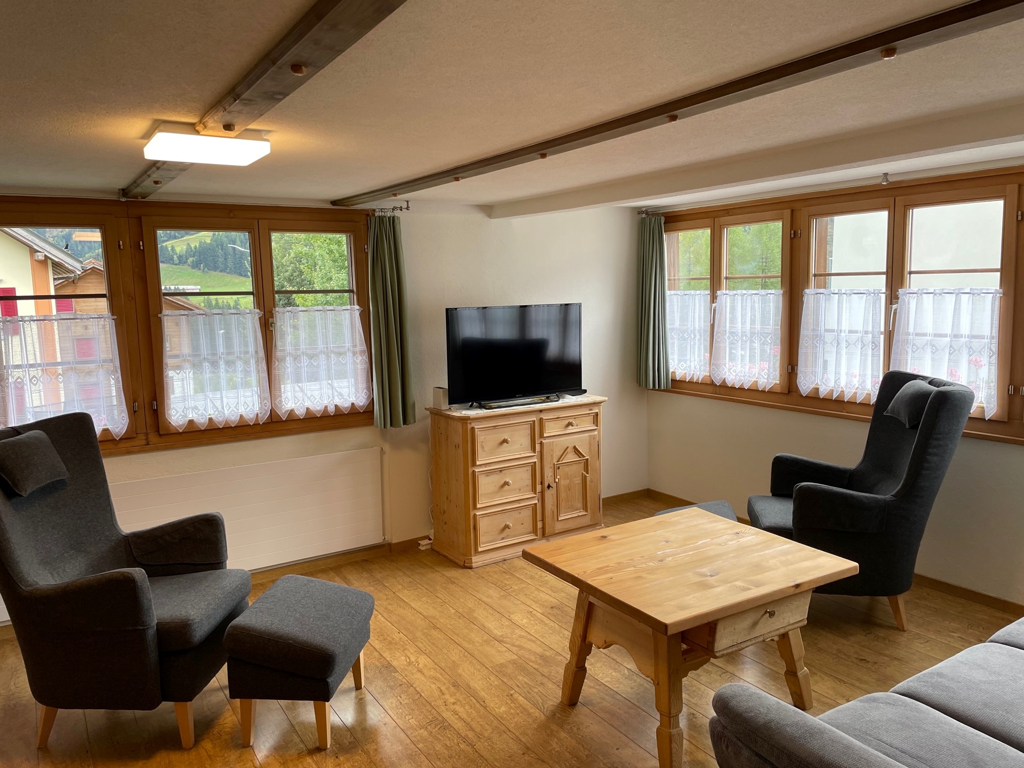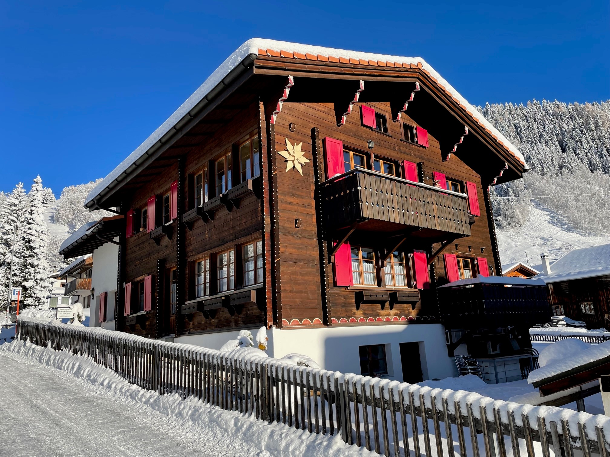 Das freistehende Zweifamilienhaus befindet sich im oberen, sonnigen Dorfteil von Sedrun. Die praktische 4.5 Zimmer Ferienwohnung mit separatem Eingang befindet sich im Parterre, somit ist die Wohnung auch geeignet für Personen mit Beeinträchtigung. Im ganzen Haus gilt Rauch- und r grosse Eingangsbereich mit Aussensitzplatz dient als Garderobe sowie als Abstellraum von diversen Sportgeräten, Kinderwagen etc. Zwei Parkplätze stehen direkt beim Haus gratis zur Verfügung.Das im neuen Glanz frisch sanierte öffentliche Wellness- und Erlebnisbad Bogn Sedrun ist ab Herbst 2024 wieder offen und befindet sich vis-à-vis von der Ferienwohnung, ebenfalls befindet sich der beliebte Kinderspielplatz sowie das Dorfmuseum La Truaisch in unmittelbarer När Bahnhof der Matterhorn-Gotthard Bahn (MGB) zur Skiarena , die Luftseilbahn zum Ski- Wander- und Bikegebiet Cuolm da Vi Disentis, das liebevolle Skigebiet Druni KidsArena oberhalb Sedrun, die Langlaufloipe, diverse Einkaufsmöglichkeiten, Restaurants und das Tourismusbüro usw. befinden sich in nächster Nähe, zu Fuss erreichbar in 10 bis 15 r grosse Hausgarten mit Grill und Pavillon kann nach Absprache mit dem Vermieter gerne benutzt werden.