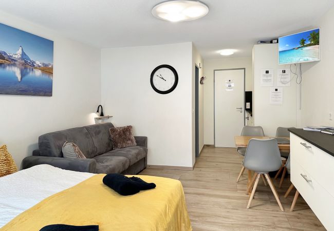 Unser voll ausgestattetes Studio ist ideal für ein Paar, bietet aber bequem Platz für 4 Personen. Ideal gelegen zwischen dem Zentrum und der Abfahrt der Einrichtungen, ist dieses einstöckige Studio mit seiner Terrasse mit Sicherheit ein großartiges Übernachtungsangebot am Fuße des Matterhorns.