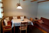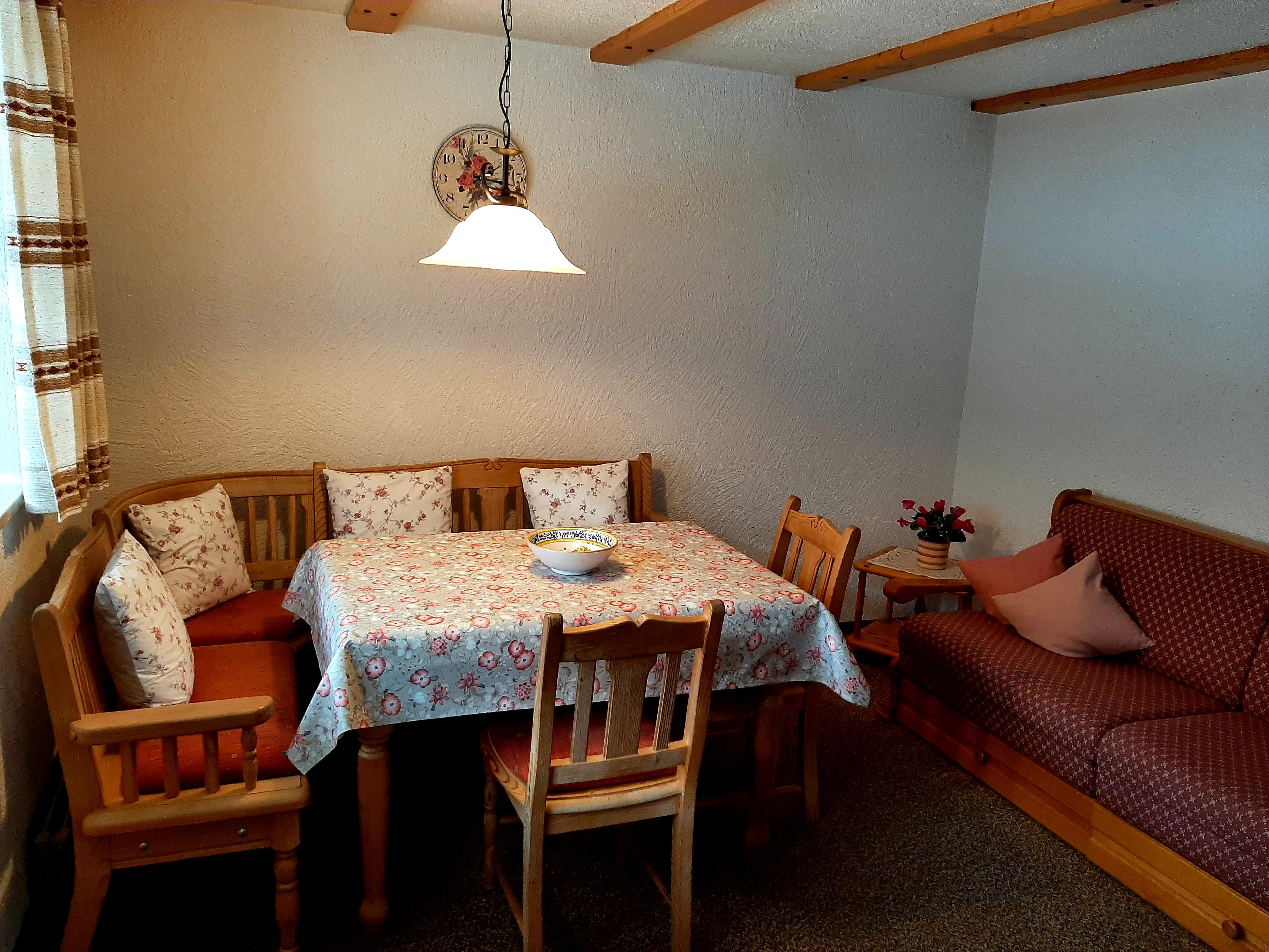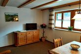 Geräumige Ferienwohnung im Erdgeschoss mit zwei separaten Schlafräumen, Dusche/WC, einer separaten Küche und einem Wohnraum mit Essecke und TV.