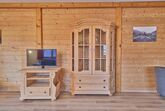 Wohnzimmer mit Sofa und TV, Essbereich mit Eckbank;
