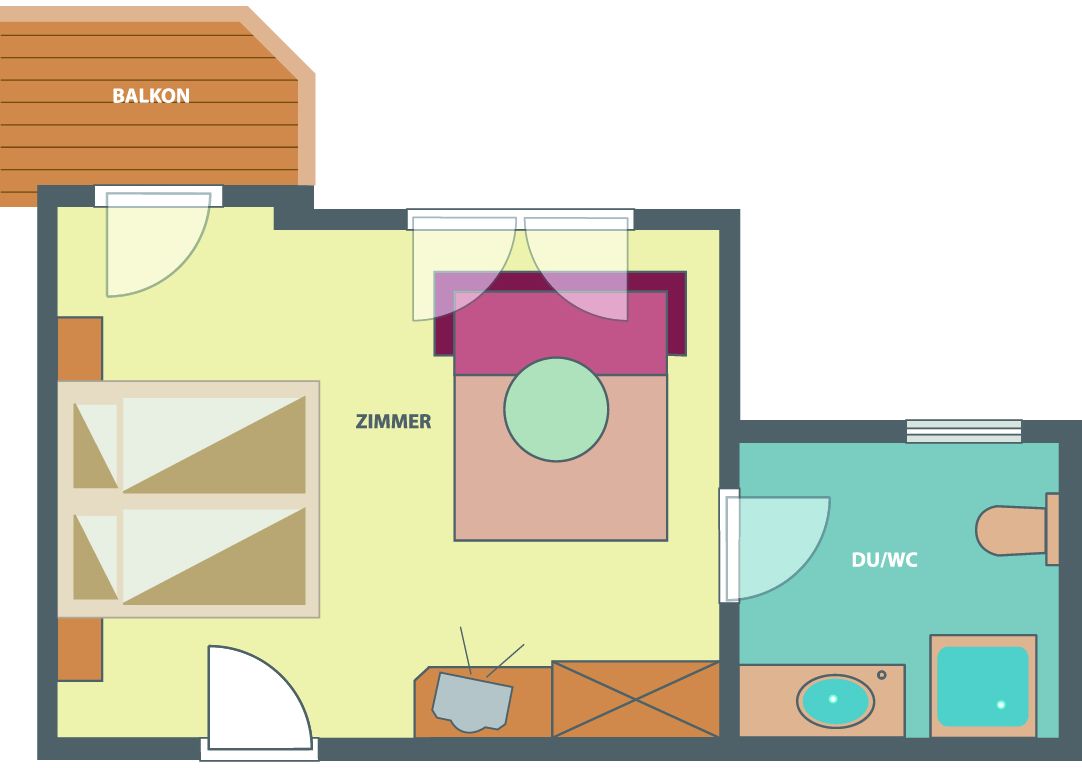Doppelzimmer - Typ B: Ca. 24 - 30 m² für 2 bis 3 Personen