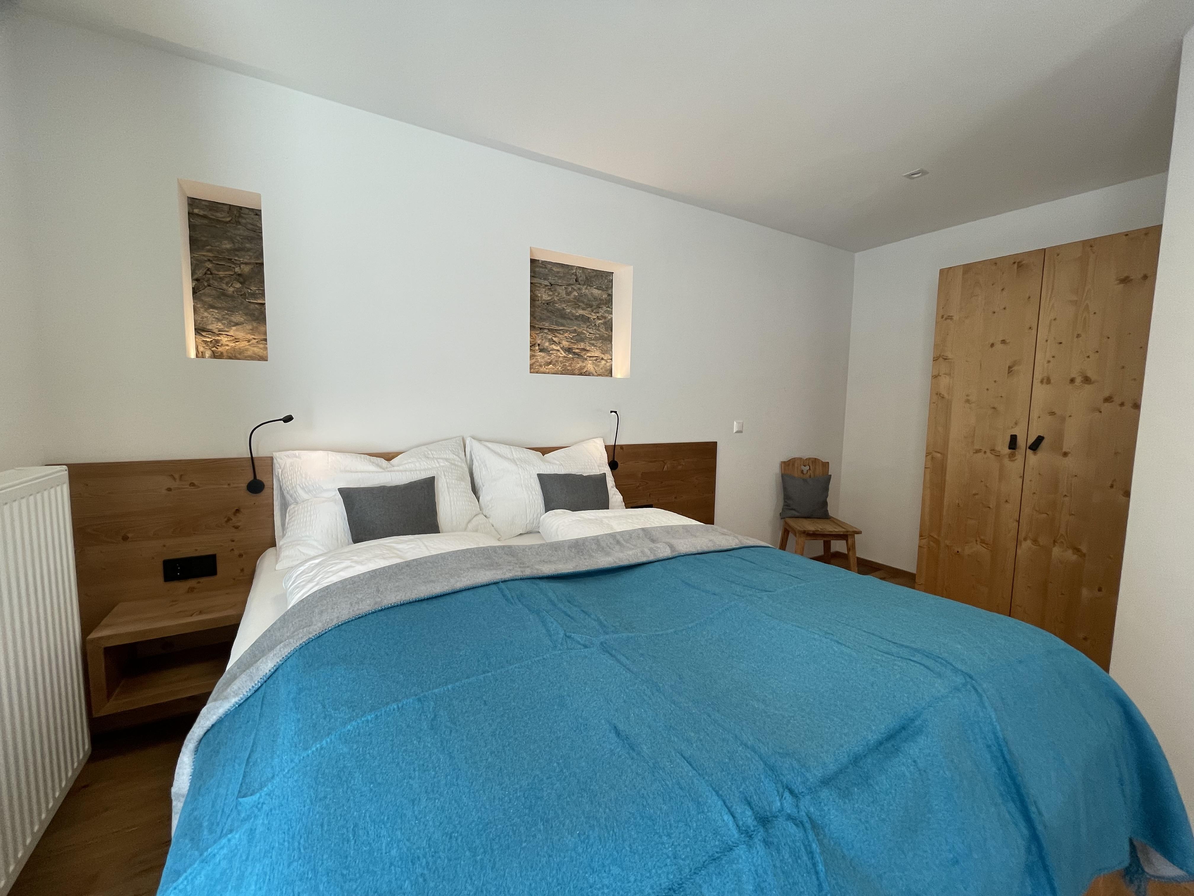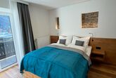 1 Doppelzimmer mit zusätzlichem Kinderbett, DU/WC, 1 Einzelzimmer mit eigener DU/WC, ca. 15m² Balkon in süd-ost-Lage, Wohn-Esszimmer mit Couch, Essecke und voll ausgestattete Küchenzeile (Microwelle, Geschirrspüler, Kaffeemaschine, Wasserkocher, Toaster, 4-Platten-Elektroherd, Kühlschrank, Gefrierfach, Dunstabzug, Backrohr), Waschmaschine, Holzboden im ganzen Appartement