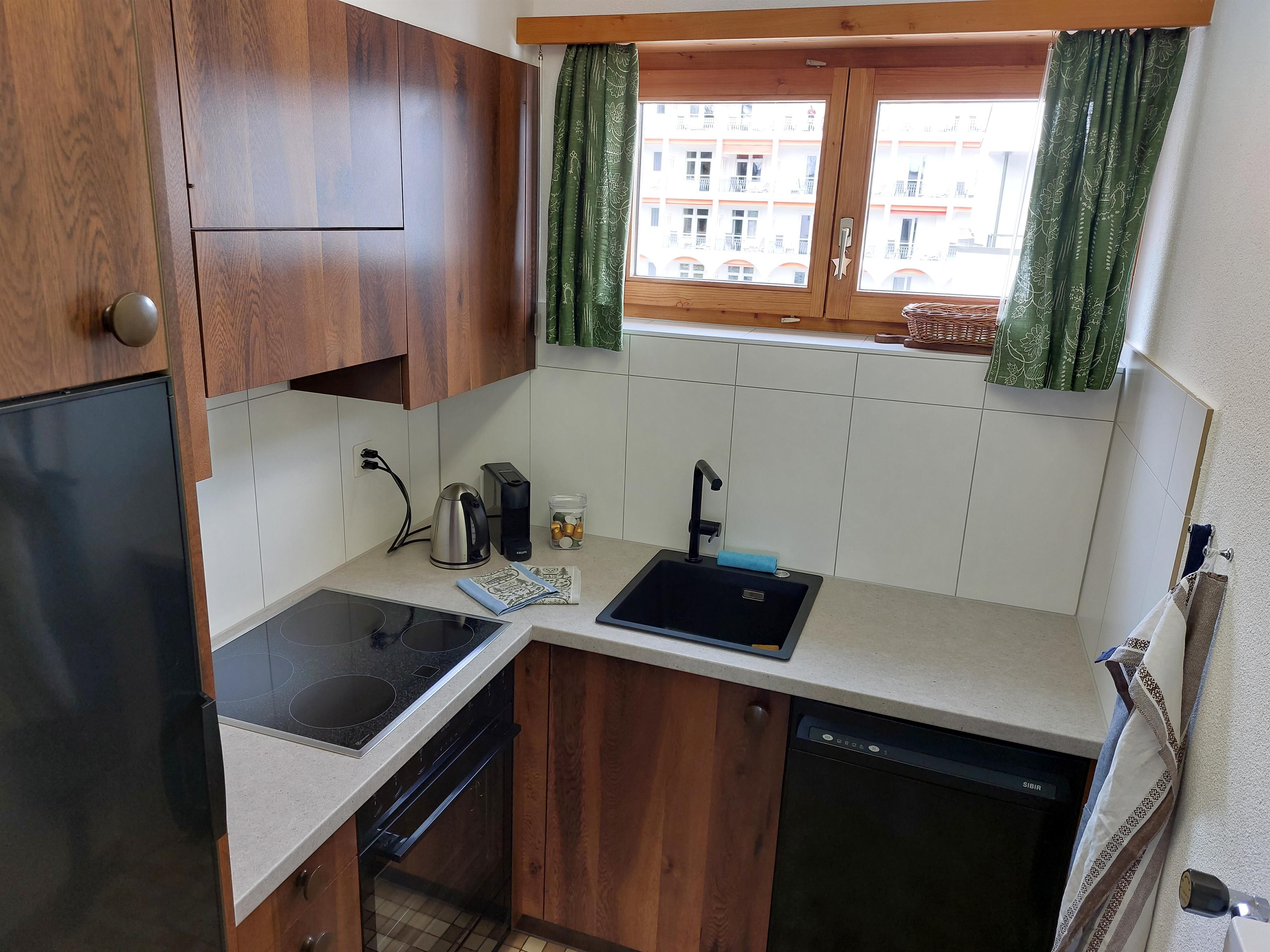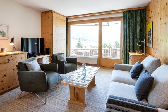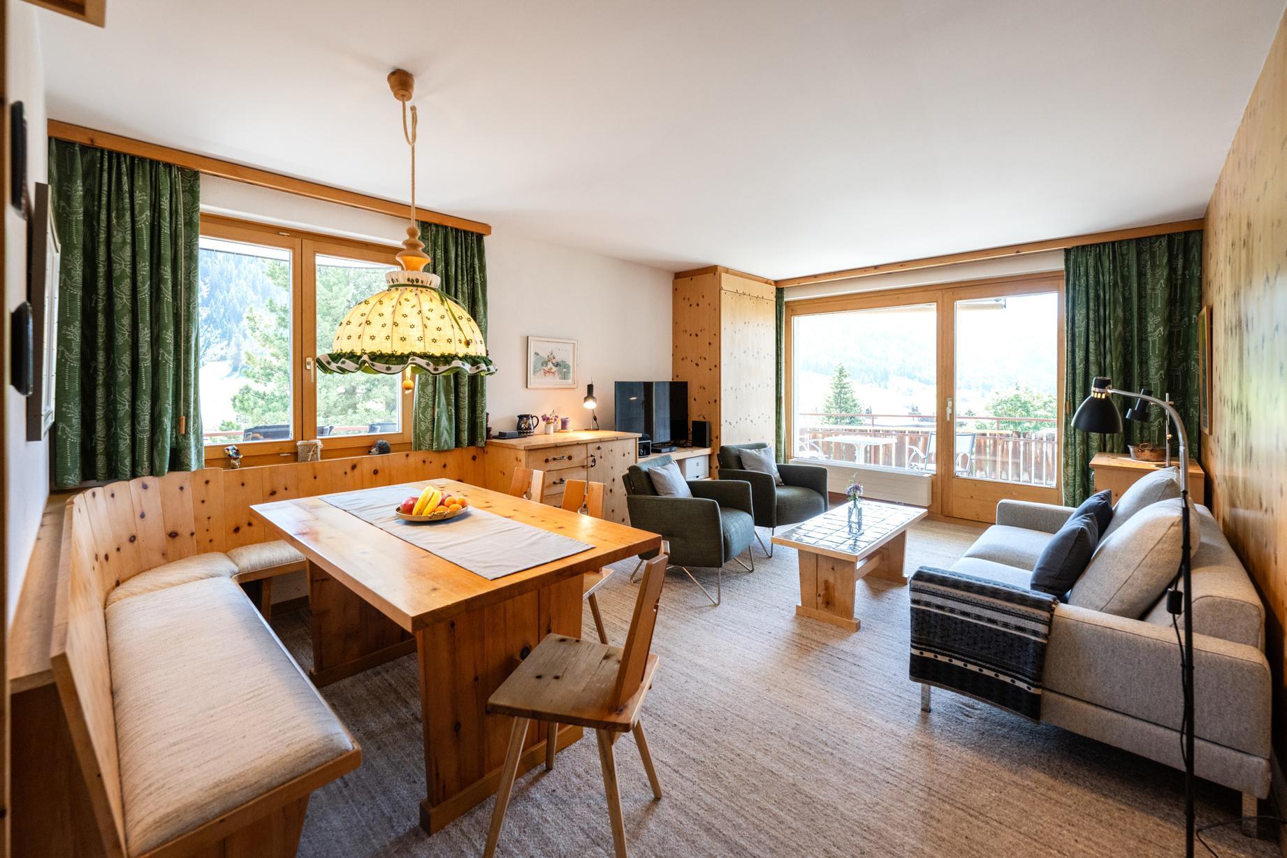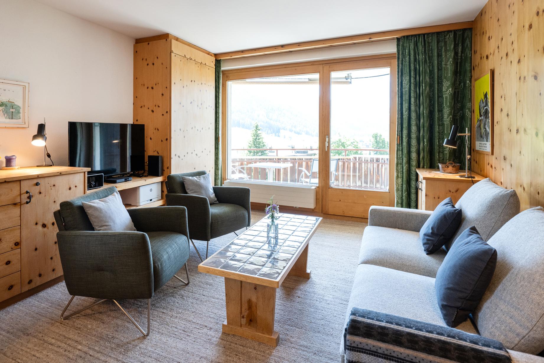 Helle, gemütliche 2 1/2 Zimmerwohnungen (ca. 55 m2) im 3. Stock für 3 Personen im Graubündener Stil, 2 Balkone mit herrlichem Bergpanoramablick (Ost und Südwest); separate Küche mit Backofen, Glaskeramikherd, Dunstabzugshaube, Kühlschrank mit Gefrierfach, Geschirrspülbecken, Geschirrspülmaschine, Wasserkocher, Kapselmaschine, Toaster und andere Küchengeräte; Badewanne/WC und Doppelwaschbecken, Föhn; 1 Schlafzimmer mit Doppelbett, Duvet nordisch; Wohnzimmer mit Essecke für 6 Personen, Polstergruppe, TV, Radio, WLAN, 1 Schrankbett (Einzelbett); Bettwäsche, Handtücher, Küchentücher, Abfallsäcke blau; Mehrfamilienhaus mit Lift, Parkplatz in Tiefgarage, Skischrank, Fahrradkeller, Trockenraum mit Waschmaschine und Trockner auf gleicher Etage, Haustiere nicht erlaubt! Nichtraucher-Wohnung!