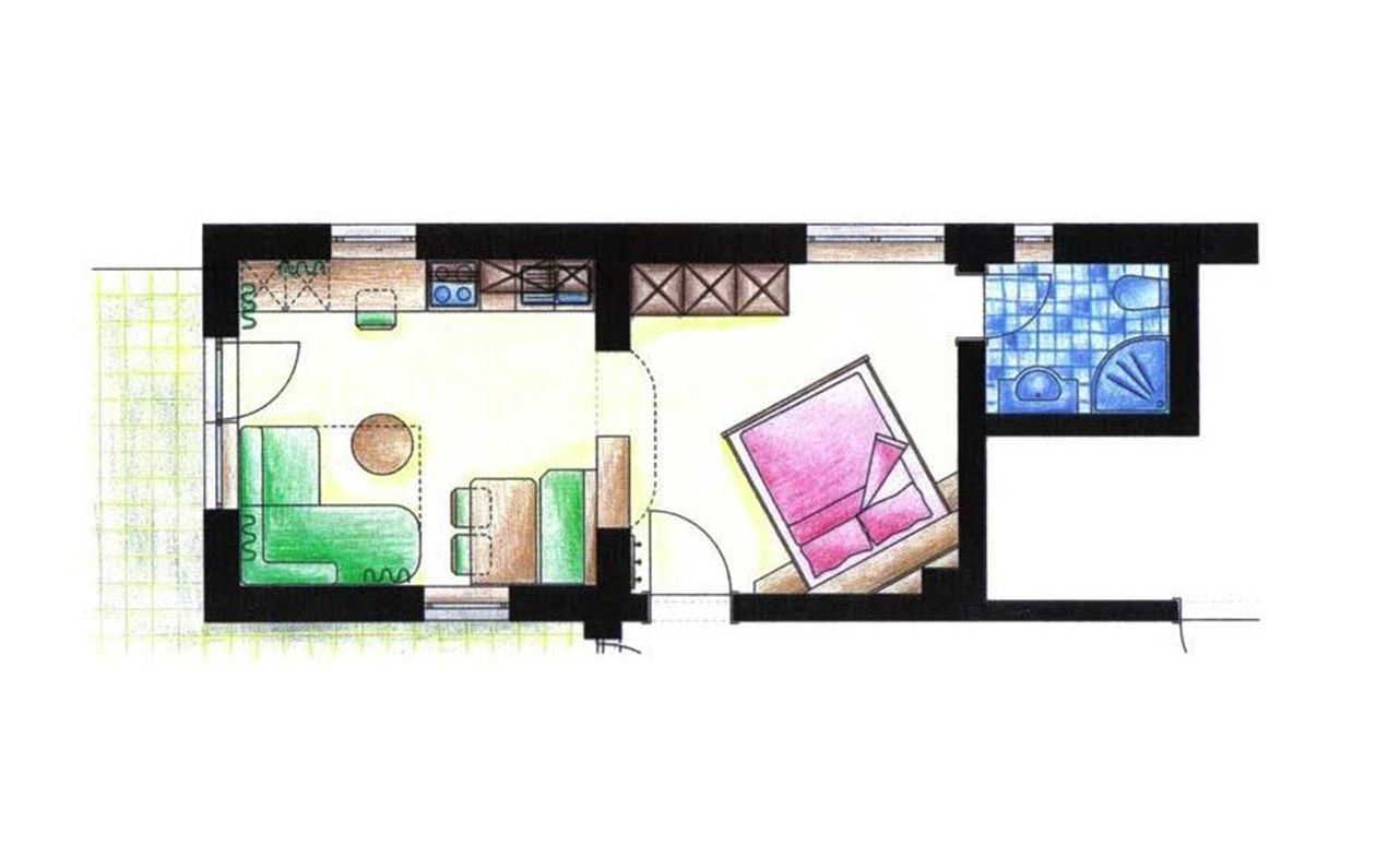 Geeignet für 2 Personen, Schlafzimmer mit Durchgang zum Wohnzimmer mit Essecke, Couch, Küchenzeile mit Mikrowelle und Geschirrspüler, Dusche, WC, Terrasse, Kabel-TV, Tel. und Internetanschluss. Type A ist eine Ferienwohnung mit zwei Räumen (Schlafzimmer und Wohnzimmer) die offen mit einander verbunden sind, Dusche, WC und kleine Terrasse. Im Wohnzimmer befindet sich die Essecke, eine Schlafcouch und die komplett eingerichtete Küchenzeile.