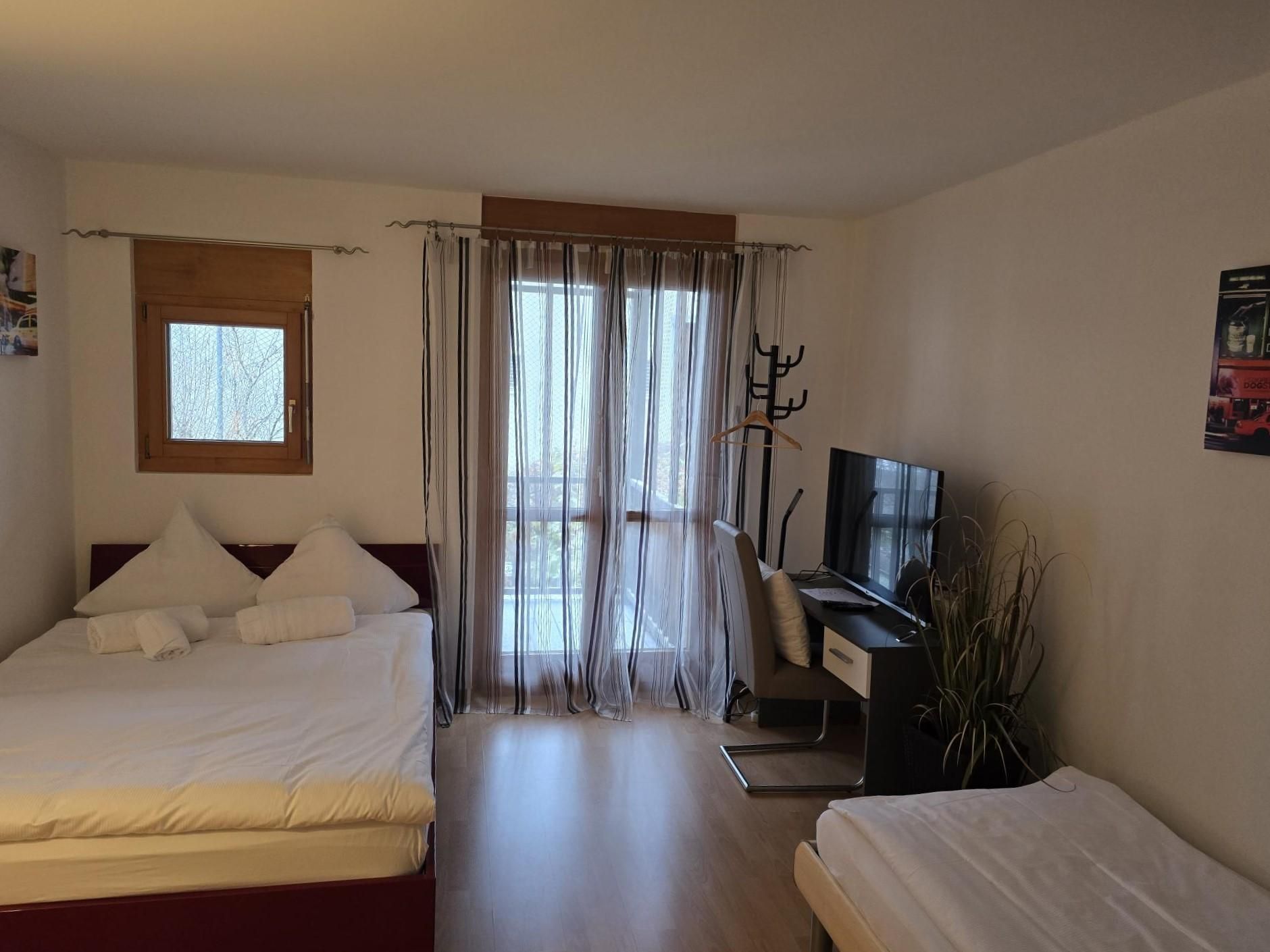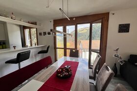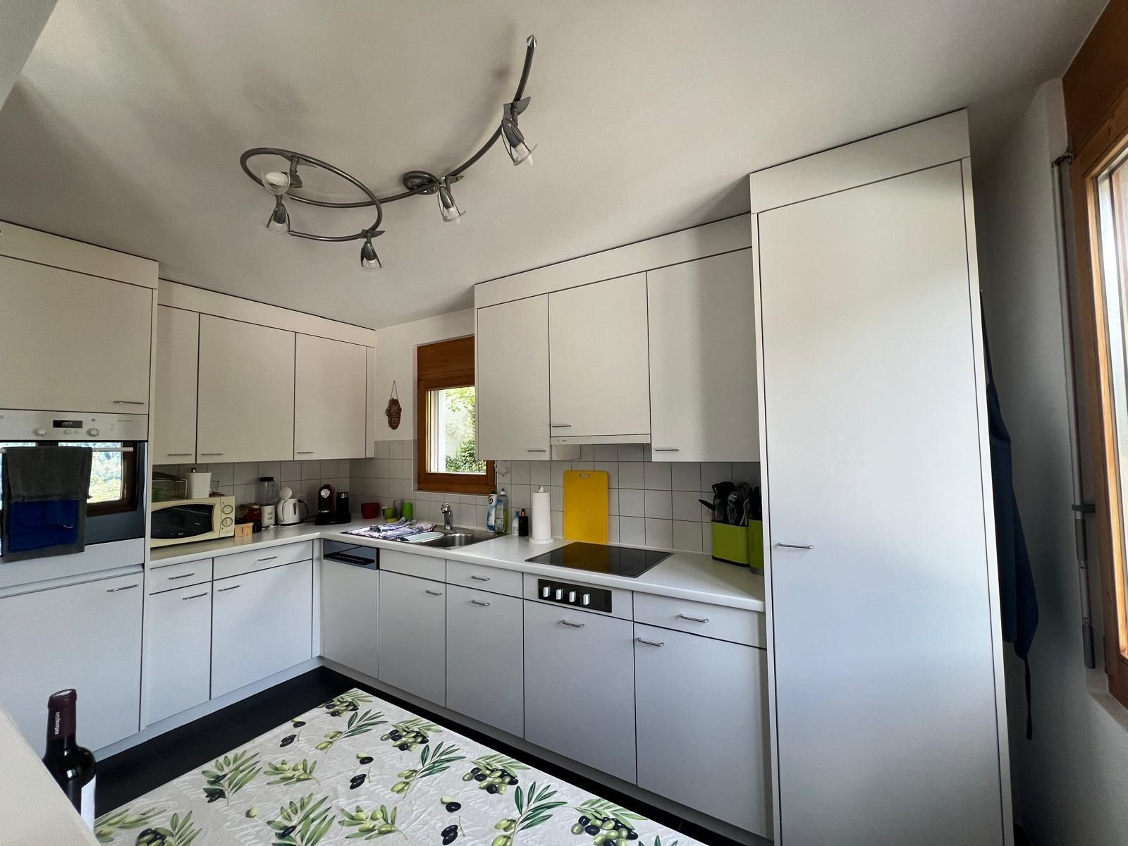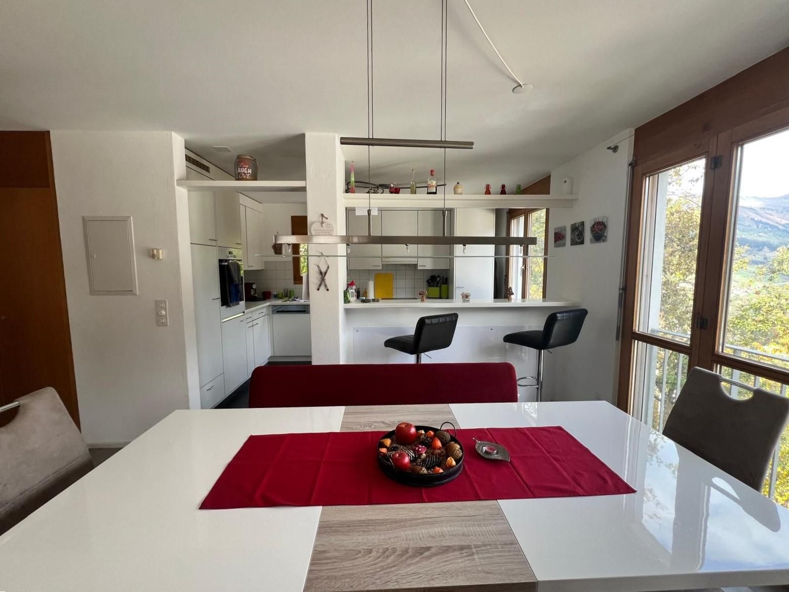 Die Ferienwohnung bietet einen groszügigen Wohnbereich mit offener, voll ausgestatteter Küche und direktem Zugang zu einem grossen Südbalkon mit Blick auf die Berge.