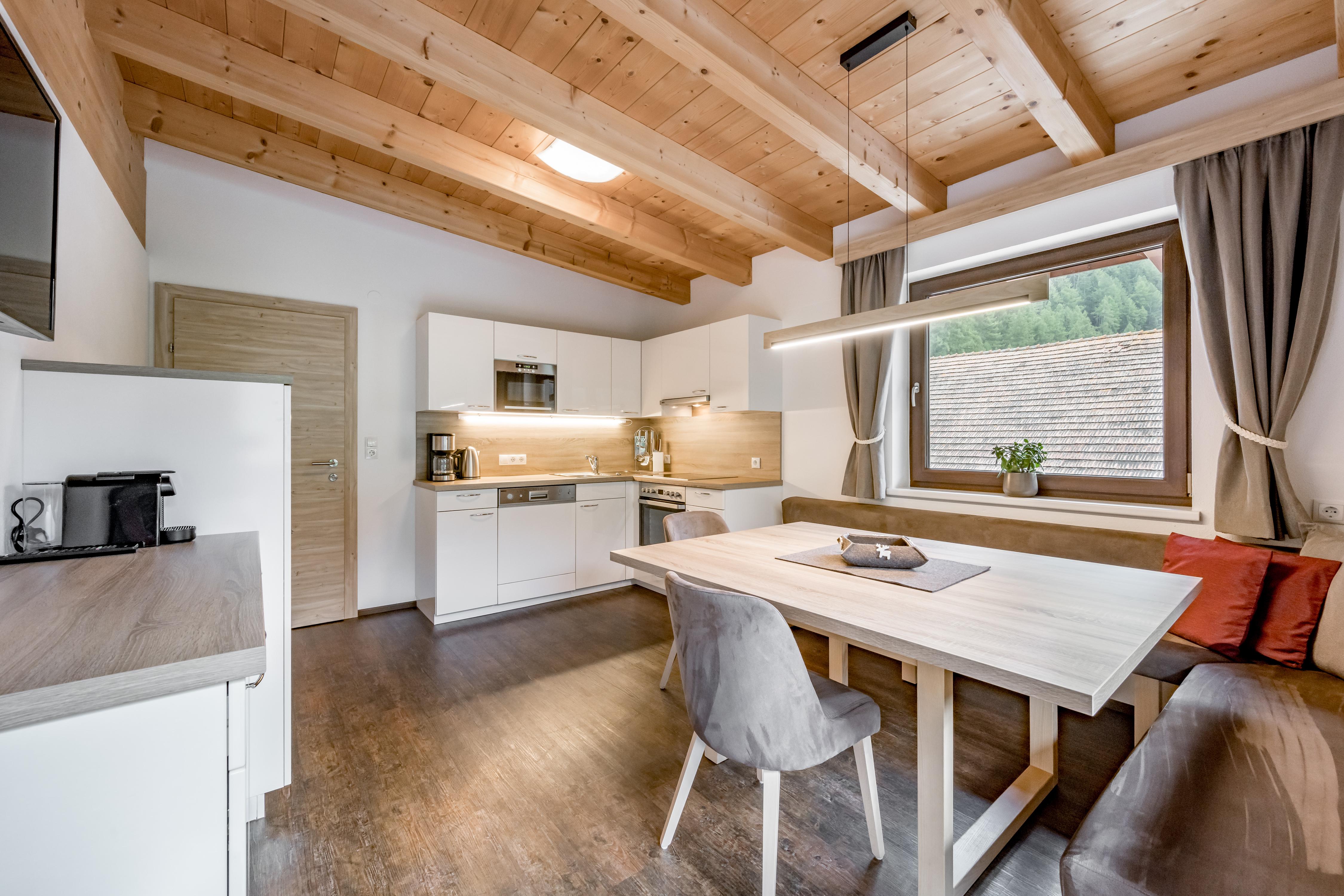 Über den Dächern von Sölden erwarten Sie lichtdurchflutete Räume, duftendes Fichtenholz, stilvolle Stoffe im warmen Farben und eine traumhafte Aussicht auf die Ötztaler Bergwelt. Ob mit Freunden oder der gesamten Familie - erleben Sie besonderen Urlaubsgenuss im 3. Obergeschoss auf ca. 85 m².
