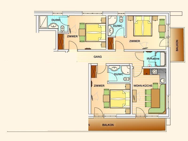 • 3 Schlafzimmer mit Flat-TV, getrennte Betten möglich, 1 Zusatzbett auf Anfrage