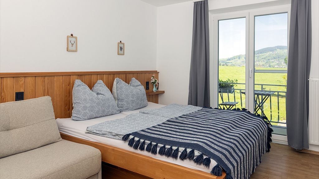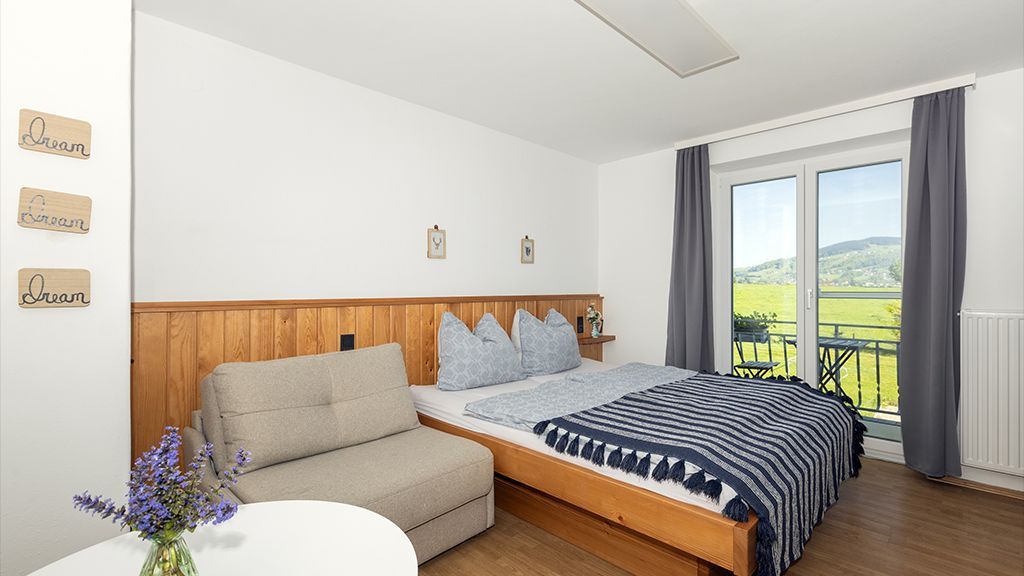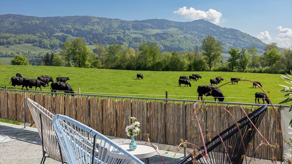 Lassen Sie sich auf der großen Terrasse beim selbstgemachten Frühstück von der Sonne wecken, die über dem Mondsee in den Himmel steigt. Alle Zimmer verfügen über Balkon und Bad. Ein ganz besonderes Flair versprechen die Betten aus massivem Fichtenholz aus dem eigenen Wald.